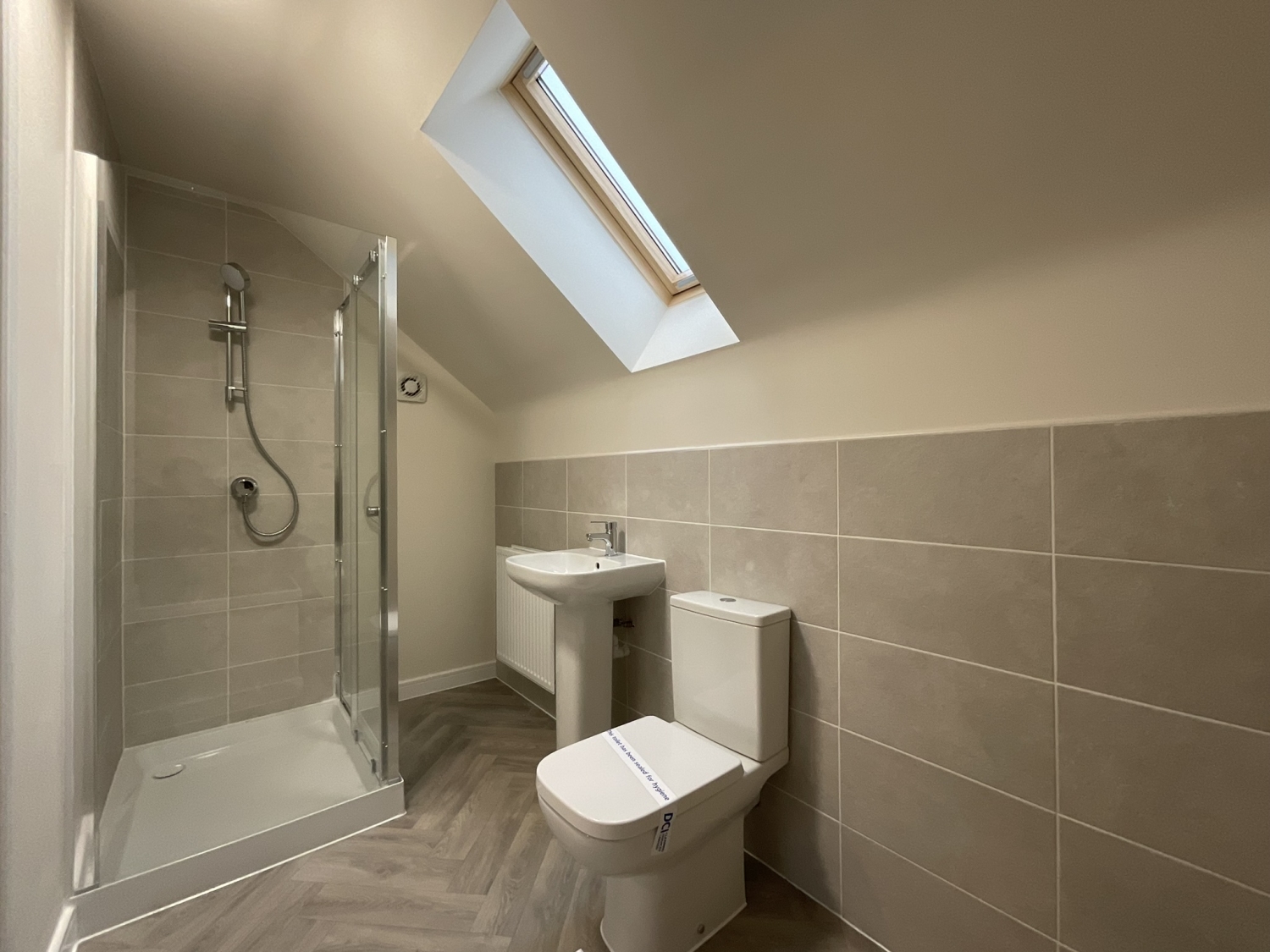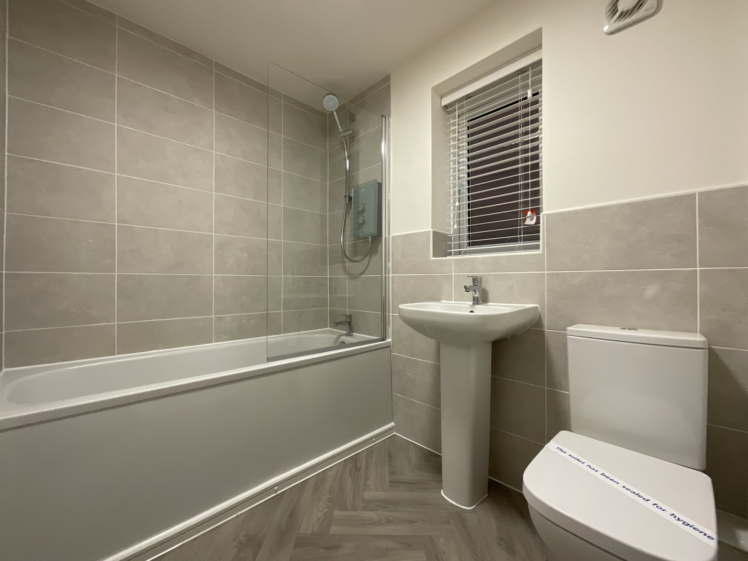 - Modern family bathroom with electric shower over bath