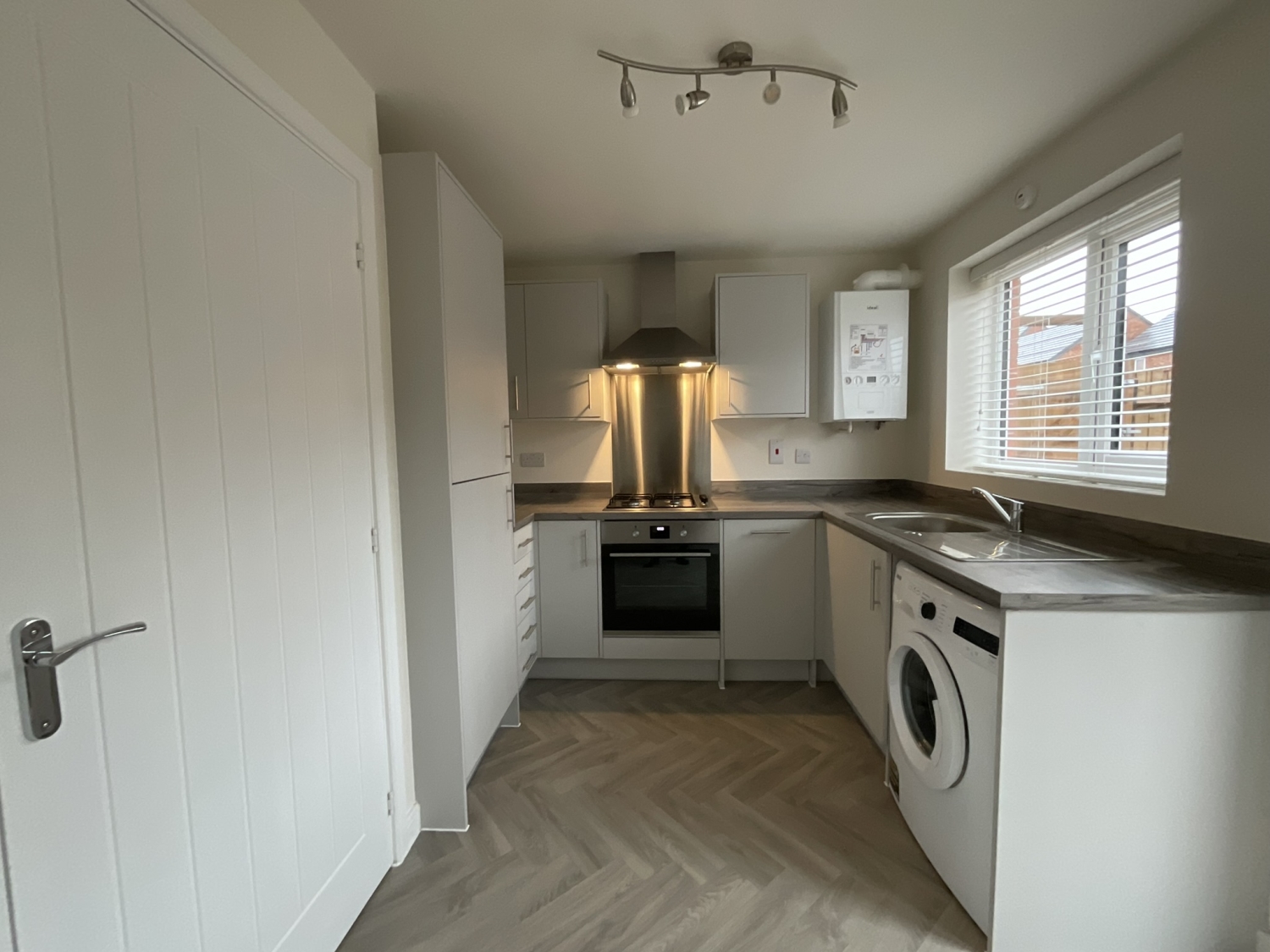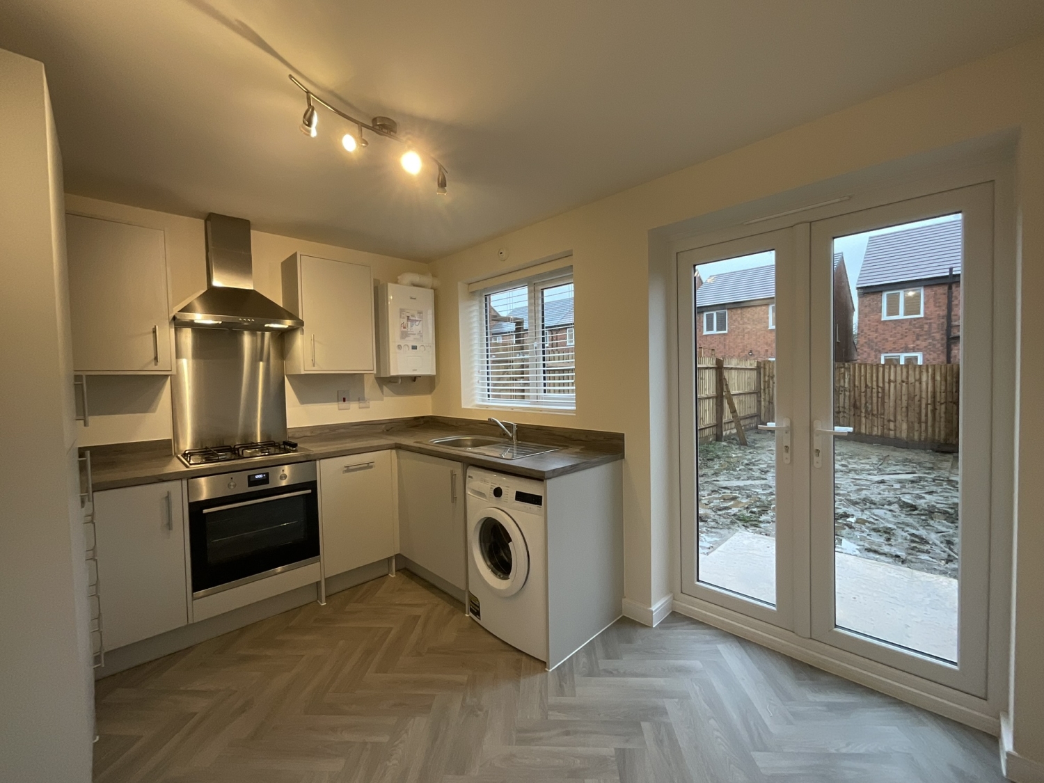 - Kitchen/diner with washing machine, fridge/freezer, electric oven, gas hob, dishwasher, extractor hood