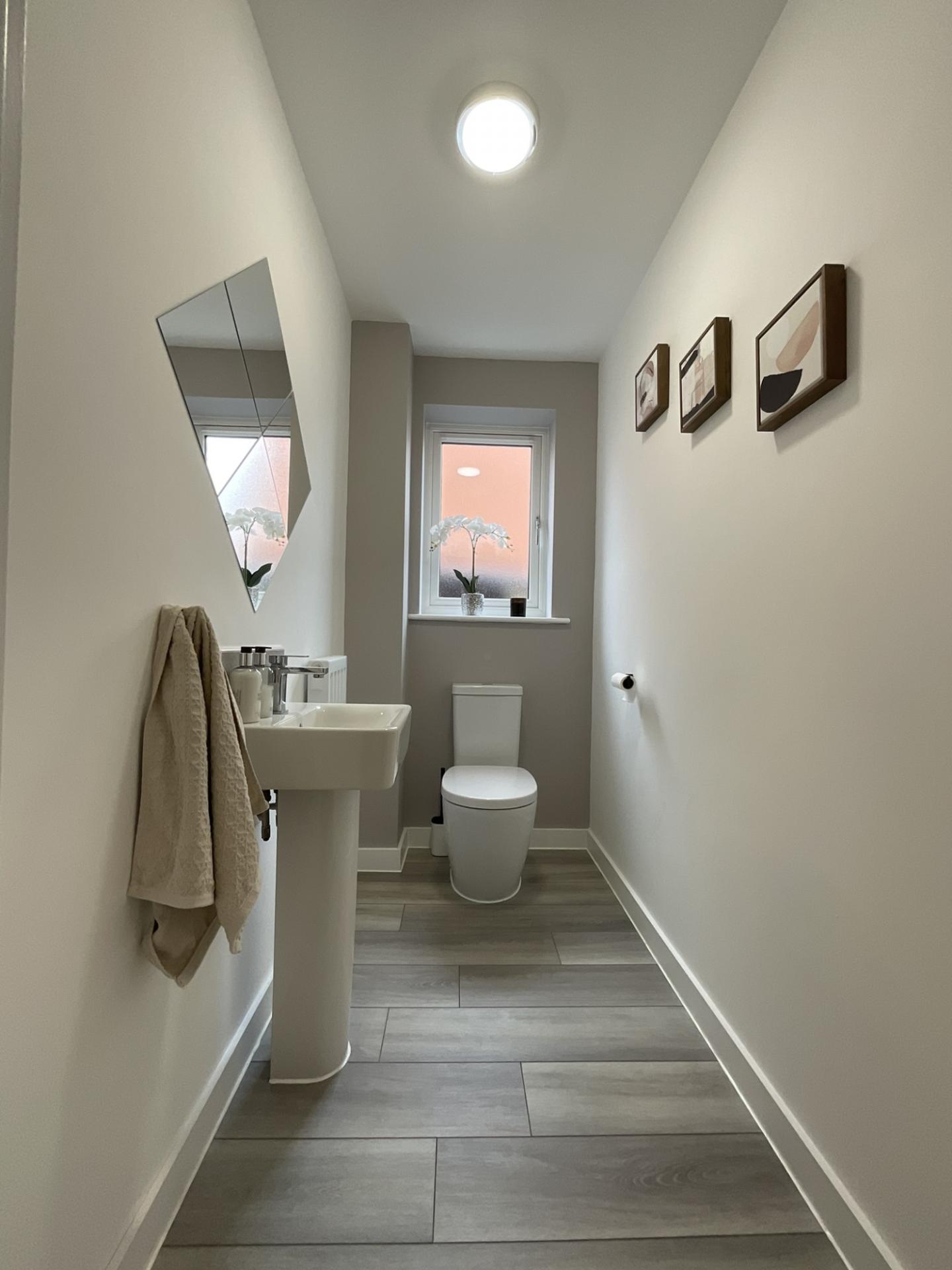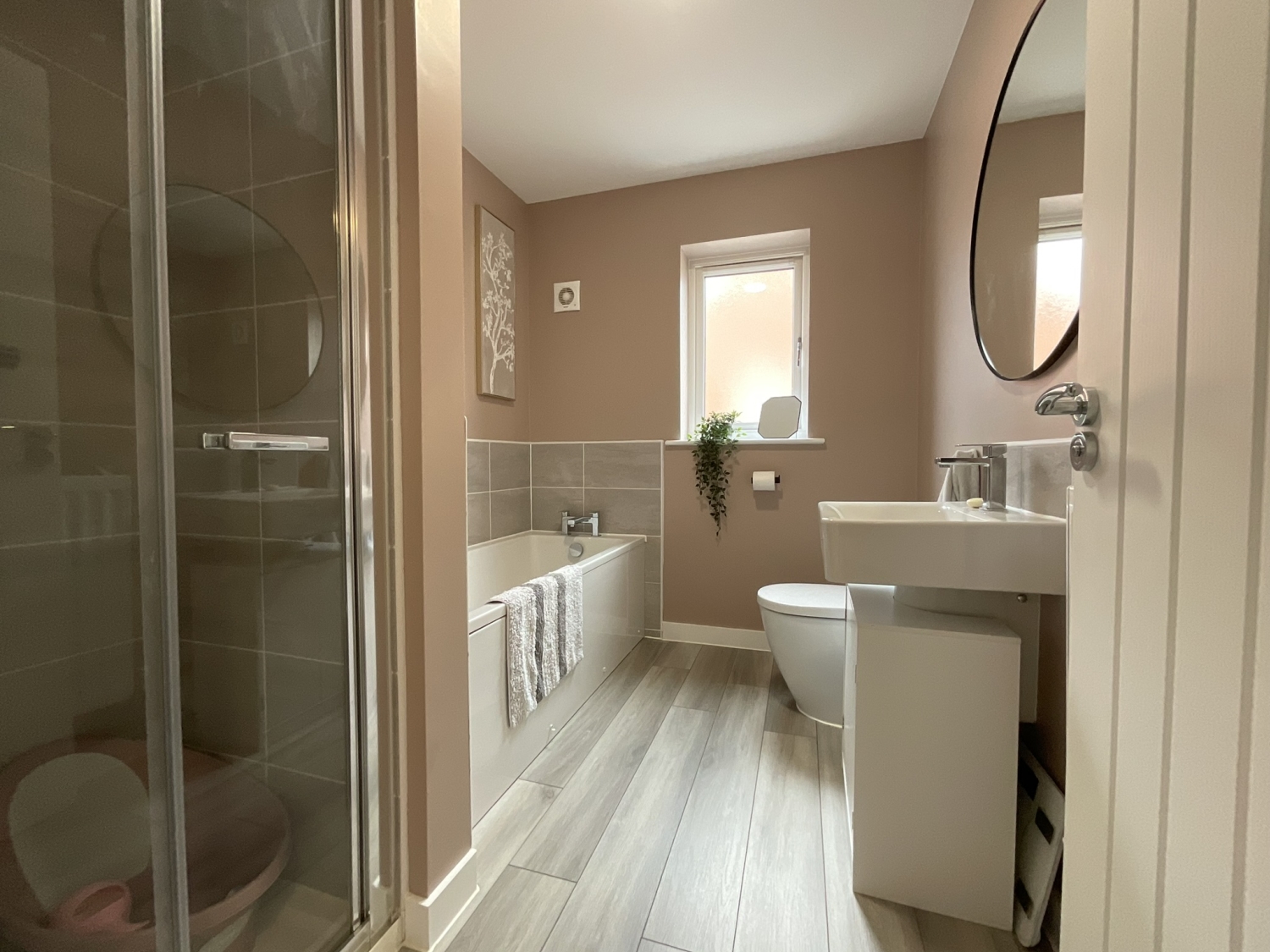 - En-suite to master with double shower enclosure, further family bathroom with separate shower cubicle, both with mains showers