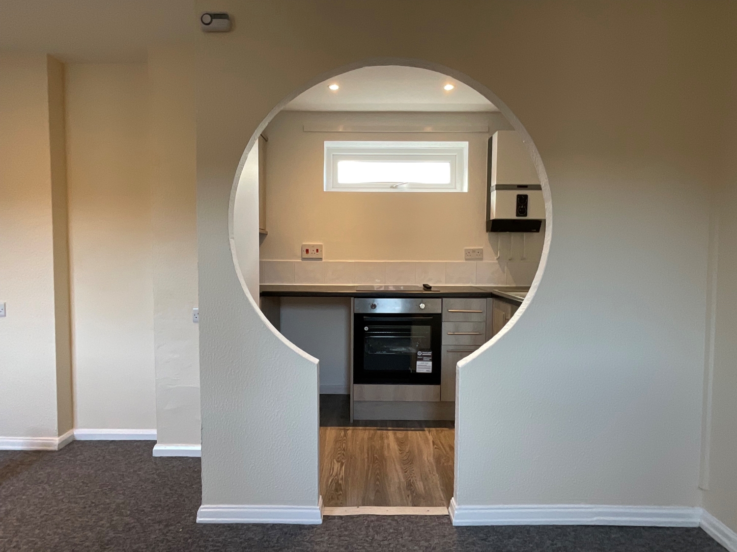 - Integrated electric oven and ceramic hob and space for washing machine and under counter fridge