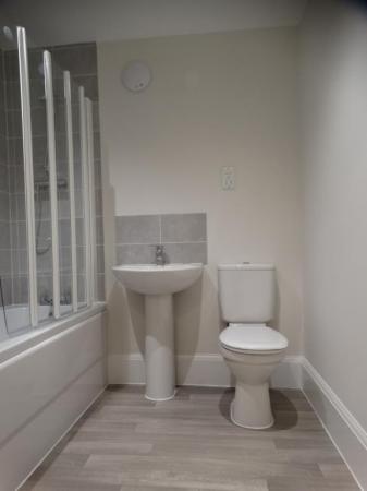 - Modern bathroom with mains shower over bath