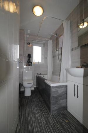 - Bathroom with electric shower over bath