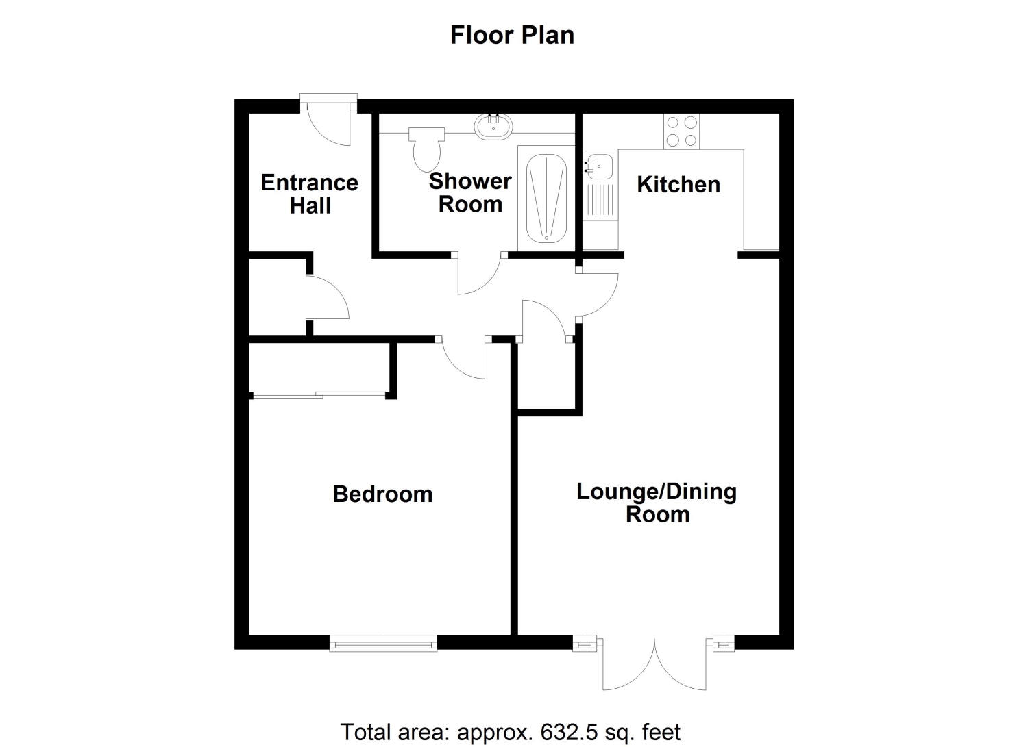 - Appliances include an oven, fridge freezer, electric hob, extractor hood, dishwasher