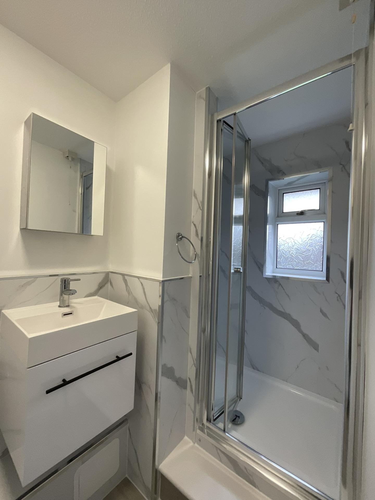 - Modern fitted kitchen with electric oven & ceramic hob and space for washing machine