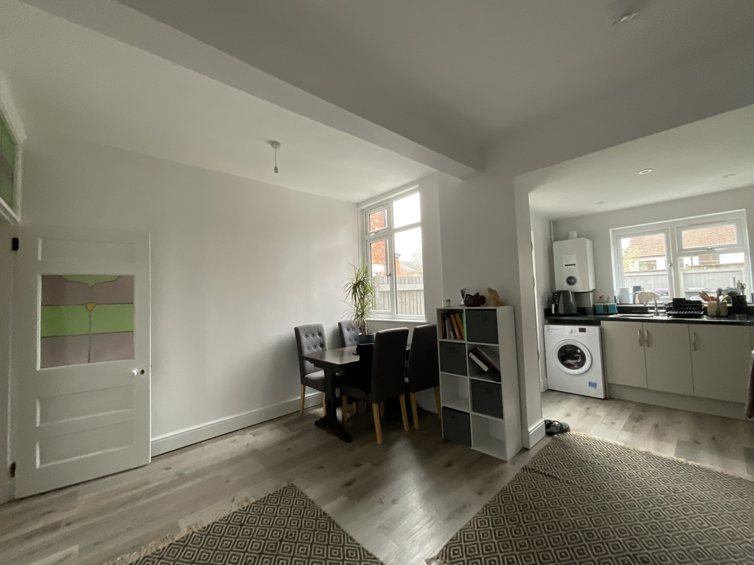 - Open plan kitchen/ dining room with modern kitchen with slot in electric oven & extractor hood