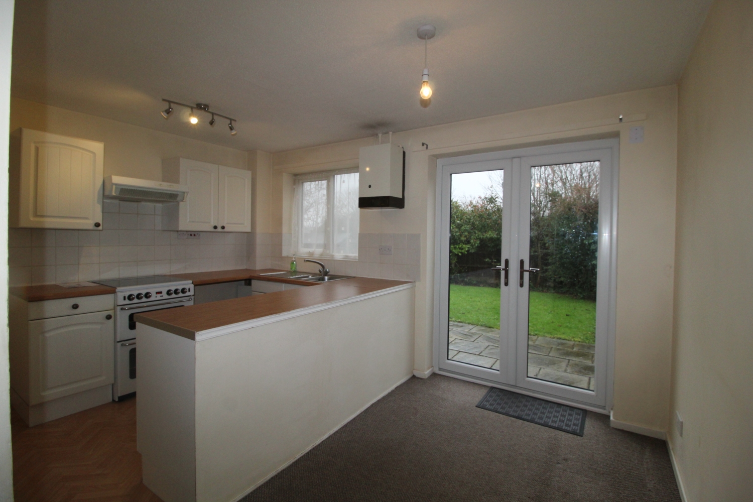 - Modern fitted kitchen with electric oven / Dining room with patio doors to garden