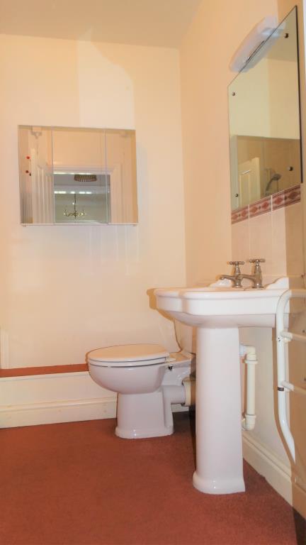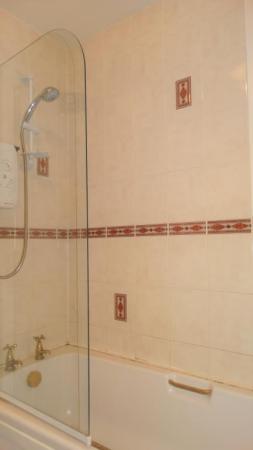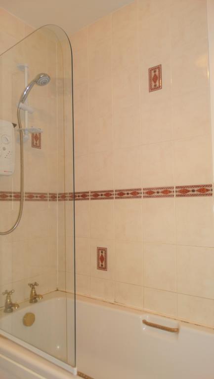 - Bathroom with electric shower over bath