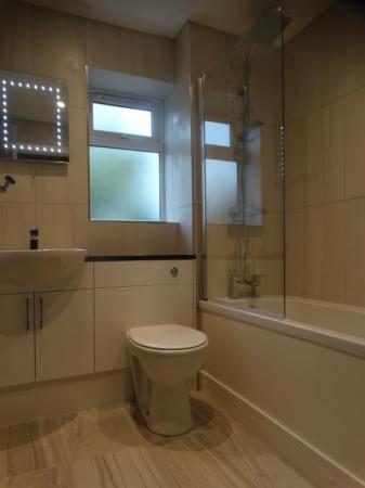 - Family bathroom with mains shower