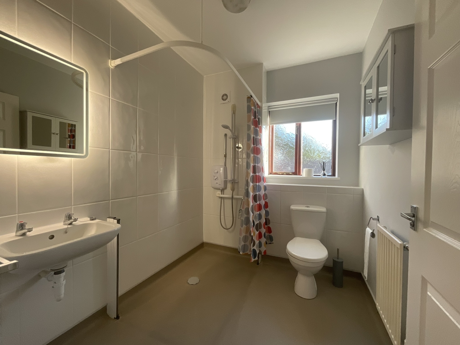 - Spacious wet room with electric shower