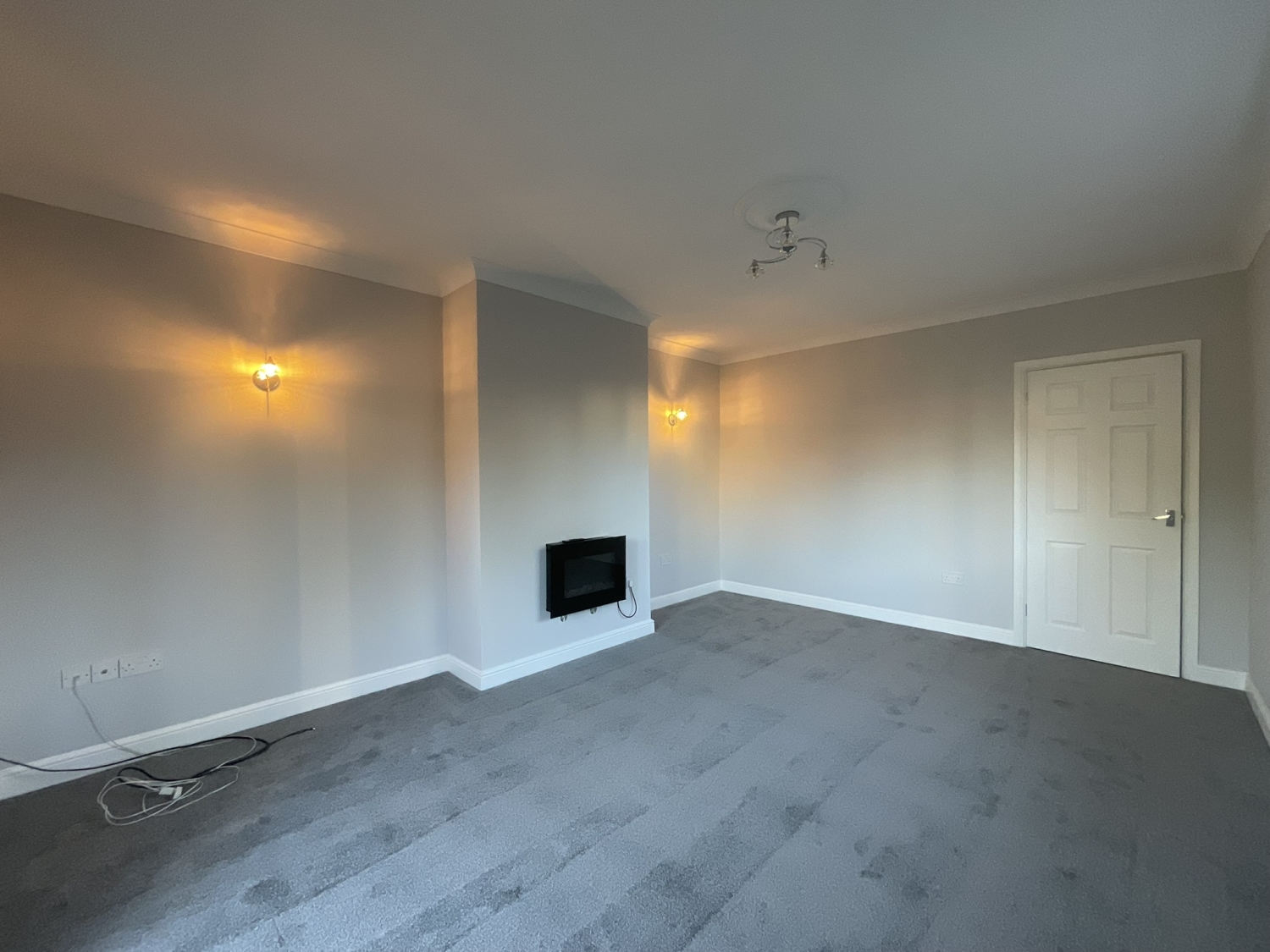 - Living room with feature electric fire & French doors leading to garden