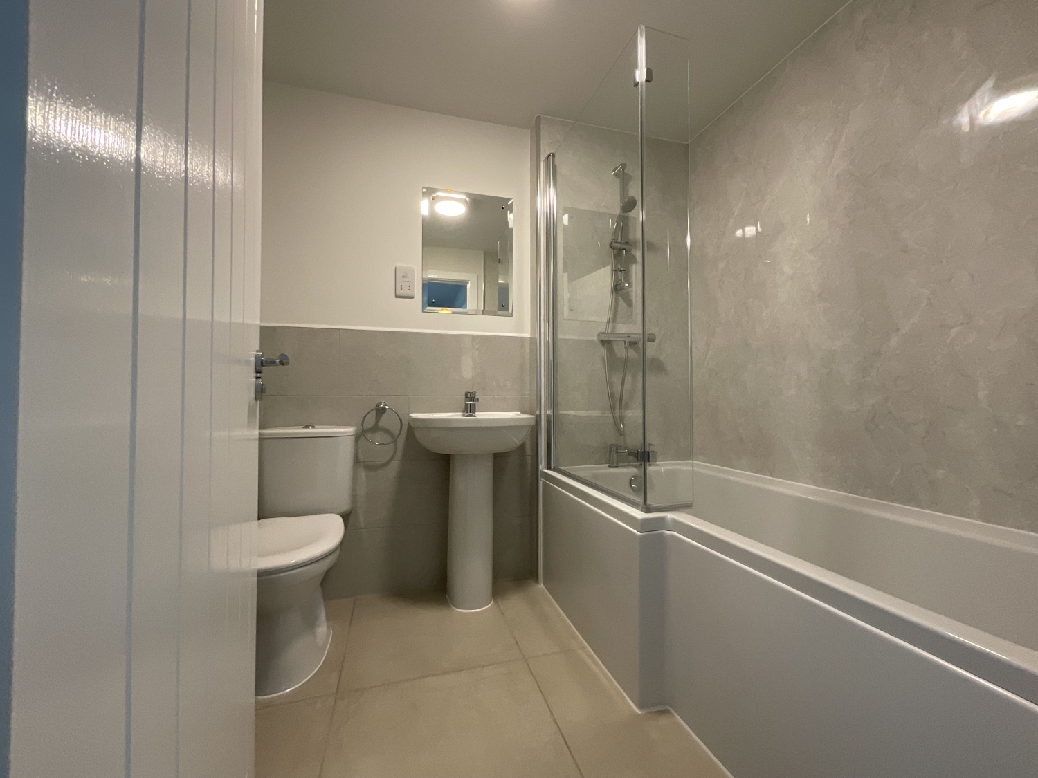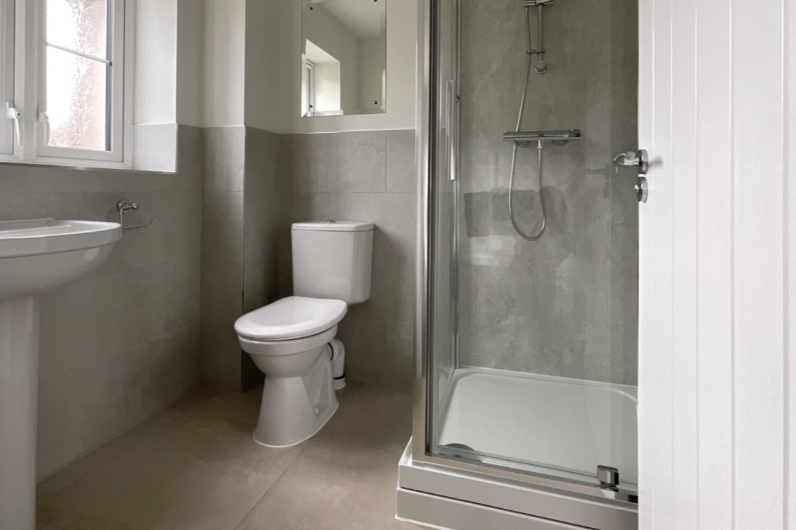 - Modern family bathroom with mains shower over bath
