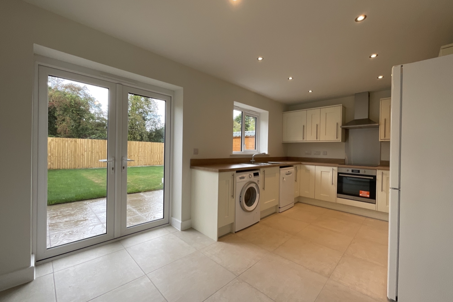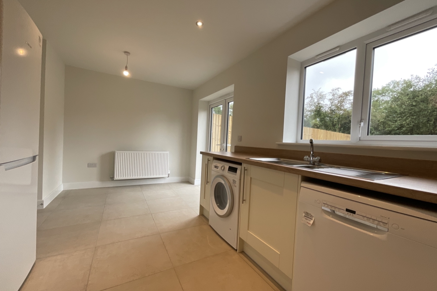 - Kitchen/Dining room with appliances (electric oven & hob, fridge/freezer, washing machine, dishwasher)