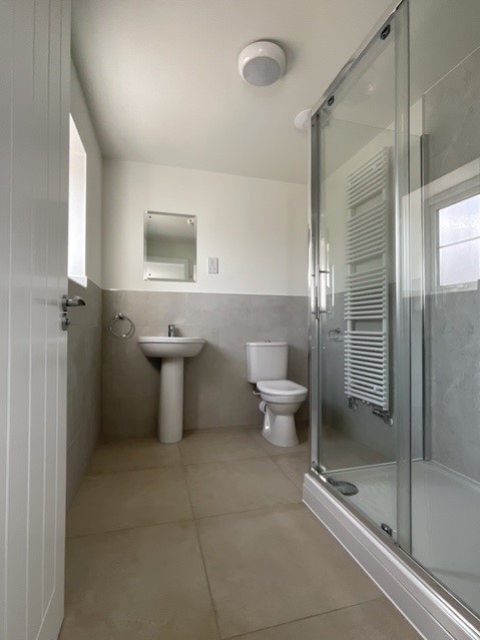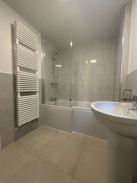 - Family bathroom with mains shower over bath.
