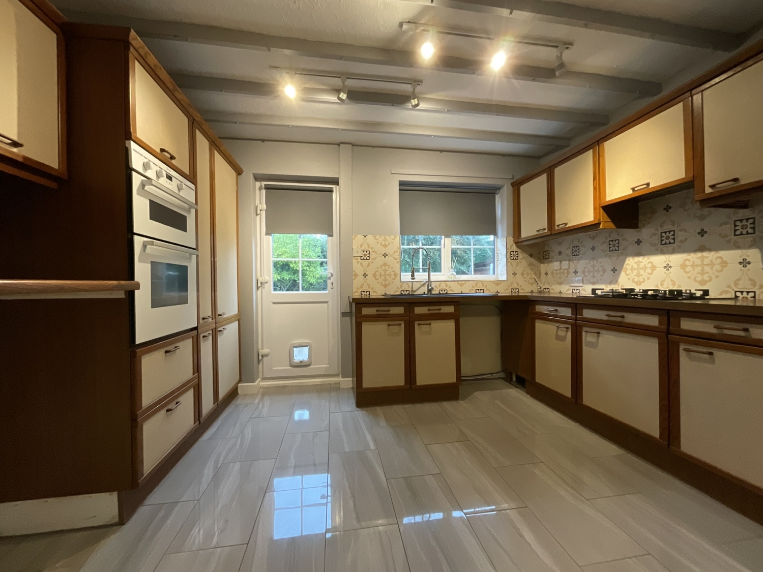 - Kitchen with gas hob & double electric oven door to rear garden