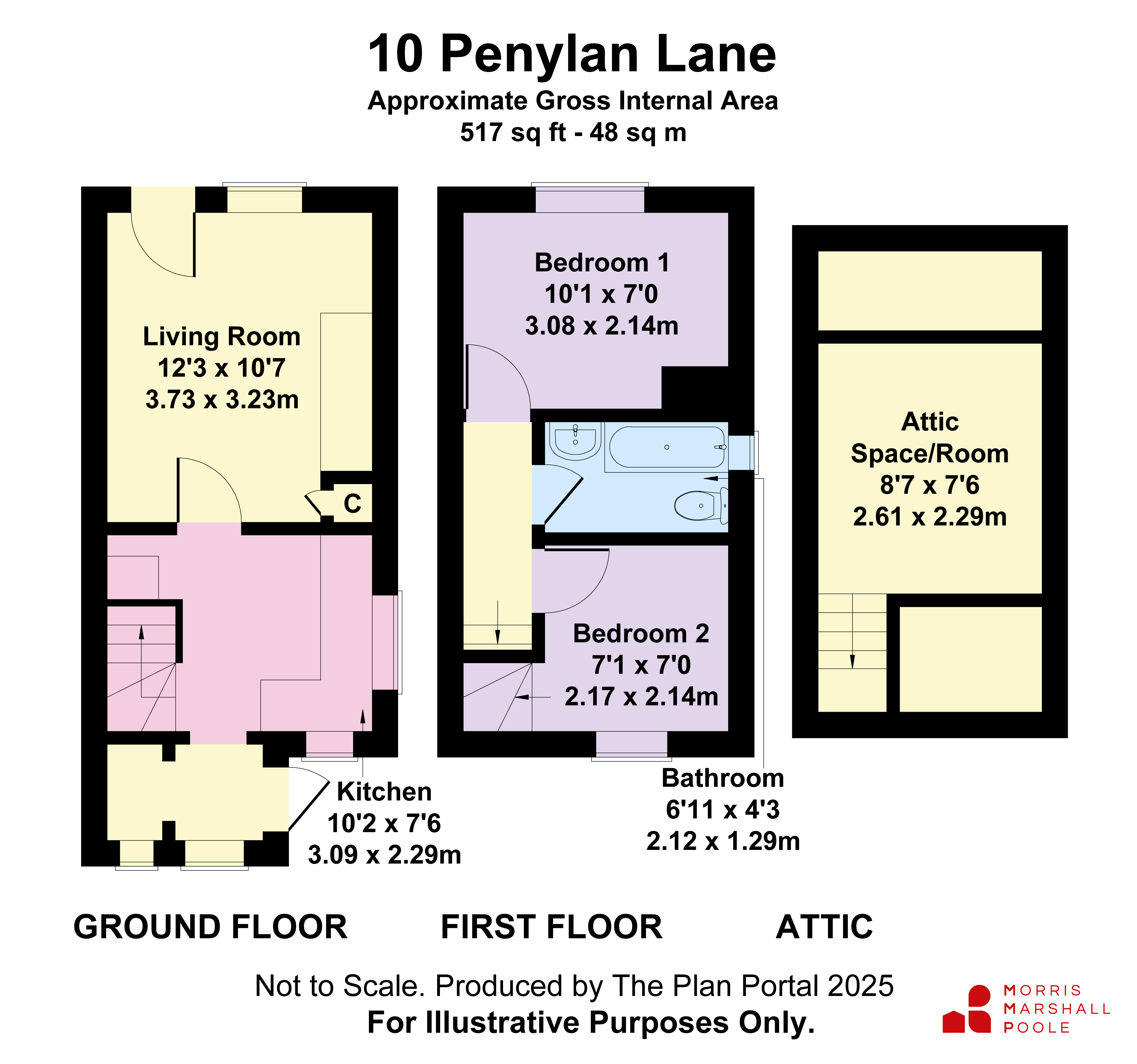 - 2 Bedrooms, Bathroom, Attic Space/Room.