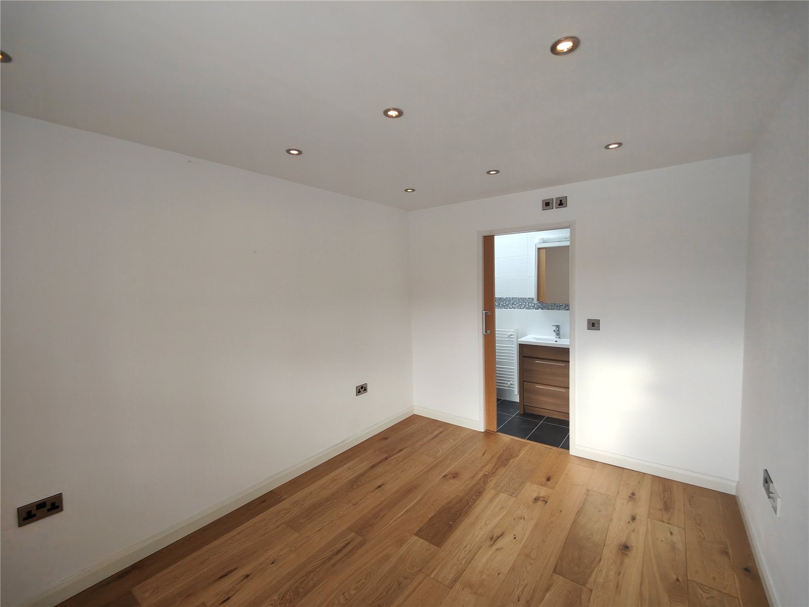 En suite shower room with walking thermostatic shower, w.c and wash basin.
