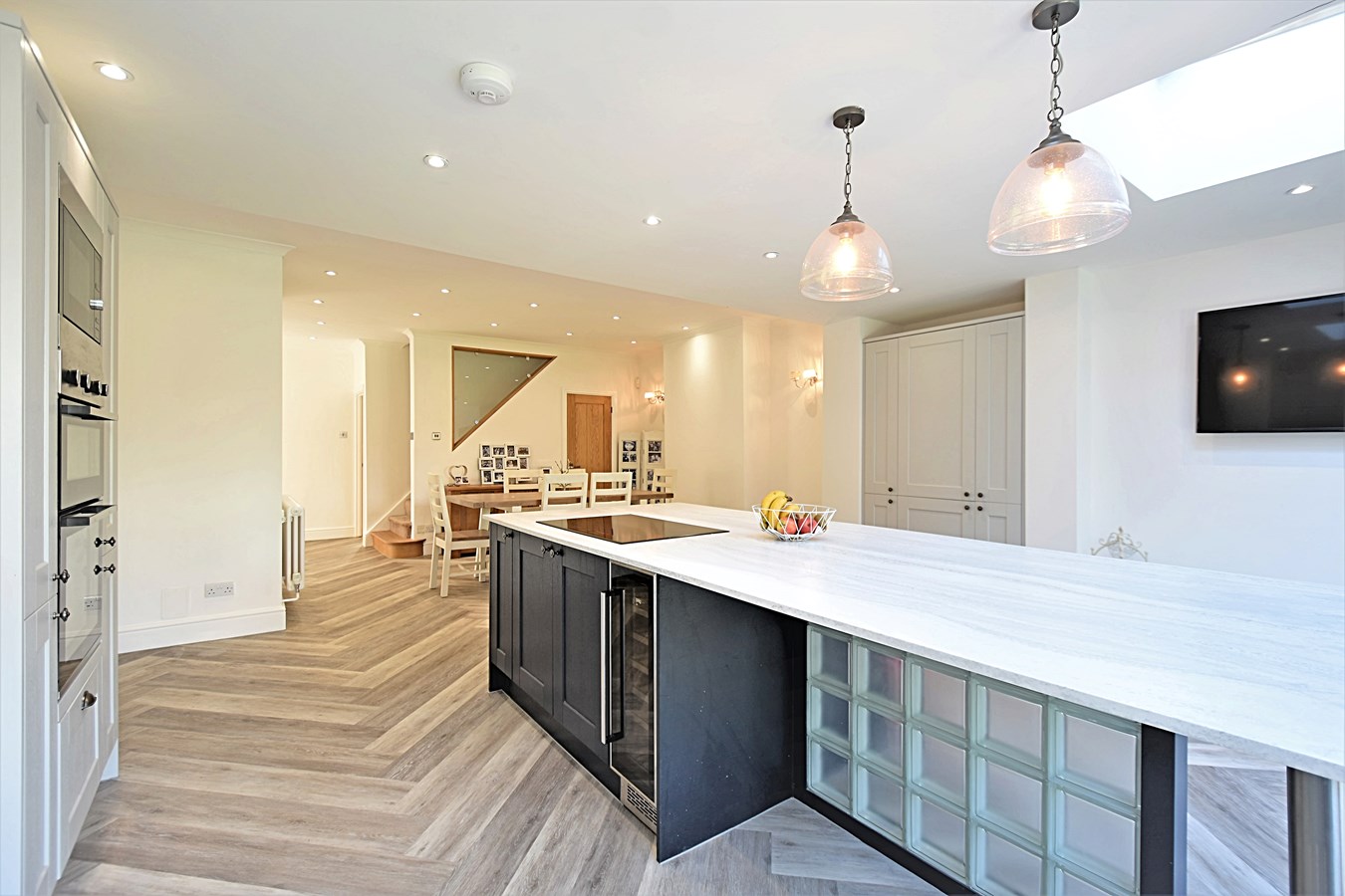 The ground floor accommodation has been completely refurbished, featuring a fully integrated kitchen, granite work surfaces and kitchen island, bi-folding doors leading outside, separate utility room and recently refurbished wet room, impressive 18'6" lounge and an extended hallway.