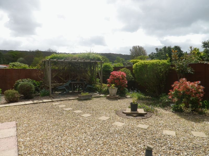 There is access to the rear of the garden via the right hand side of the property and via a pedestrian gate, gravelled footpath alongside a timber garden shed. The rear garden is fully enclosed and enjoys a southerly aspect. There are areas of patio, crazy paving, a pergola, mature shrubs and views towards Salcombe Hill.
