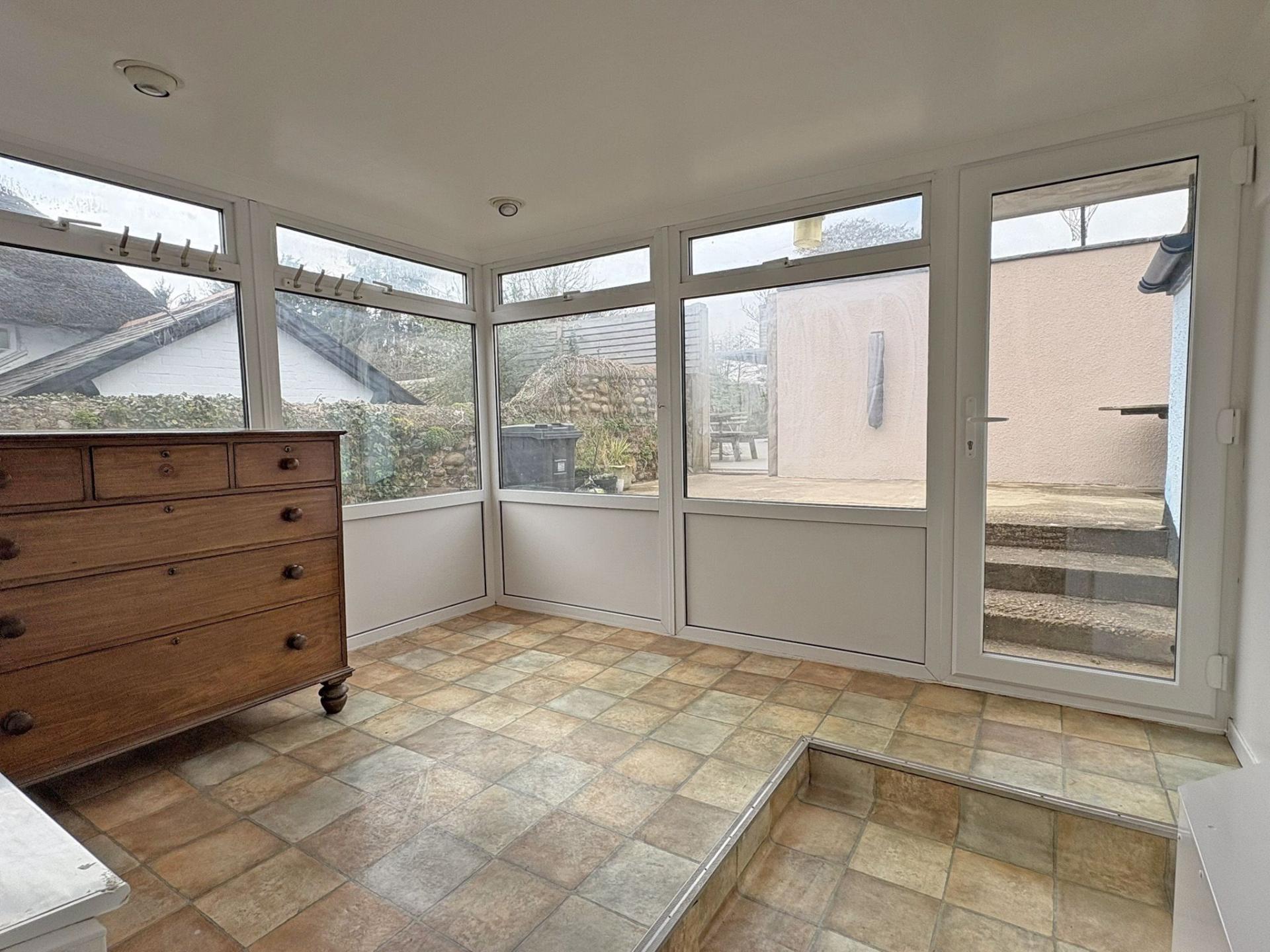 3.43m (11’03) x 2.70m (8’10) uPVC double glazed door. Solid roof. Internal steps. uPVC double glazed windows with outlook to rear garden. Ceiling downlights. Tile effect lino flooring