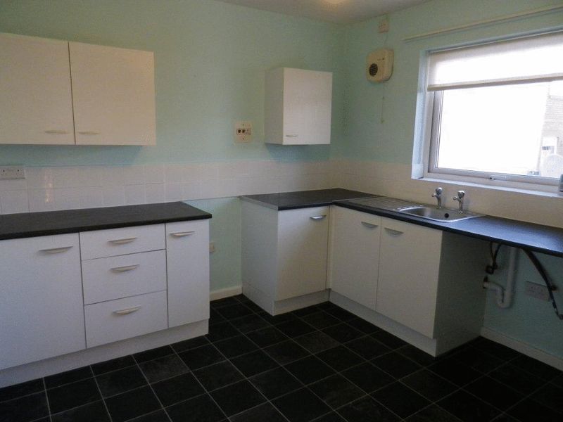 2.99m (9'09") x 2.94m (9'07") uPVC double glazed window overlooking the rear aspect and with roller blind. A fitted kitchen comprising a range of floor standing and wall mounted cupboards with white door and drawer fronts, chrome coloured handles, slate coloured worksurfaces with white tiled splashbacks and stainless steel sink with drainer. Space for freestanding electric cooker. Space and plumbing for washing machine. Space for freestanding fridge/freezer. Wall mounted Ideal Classic gas fired boiler for heating & hot water time control clock. Tile effect lino floor covering. Radiator. Extractor.