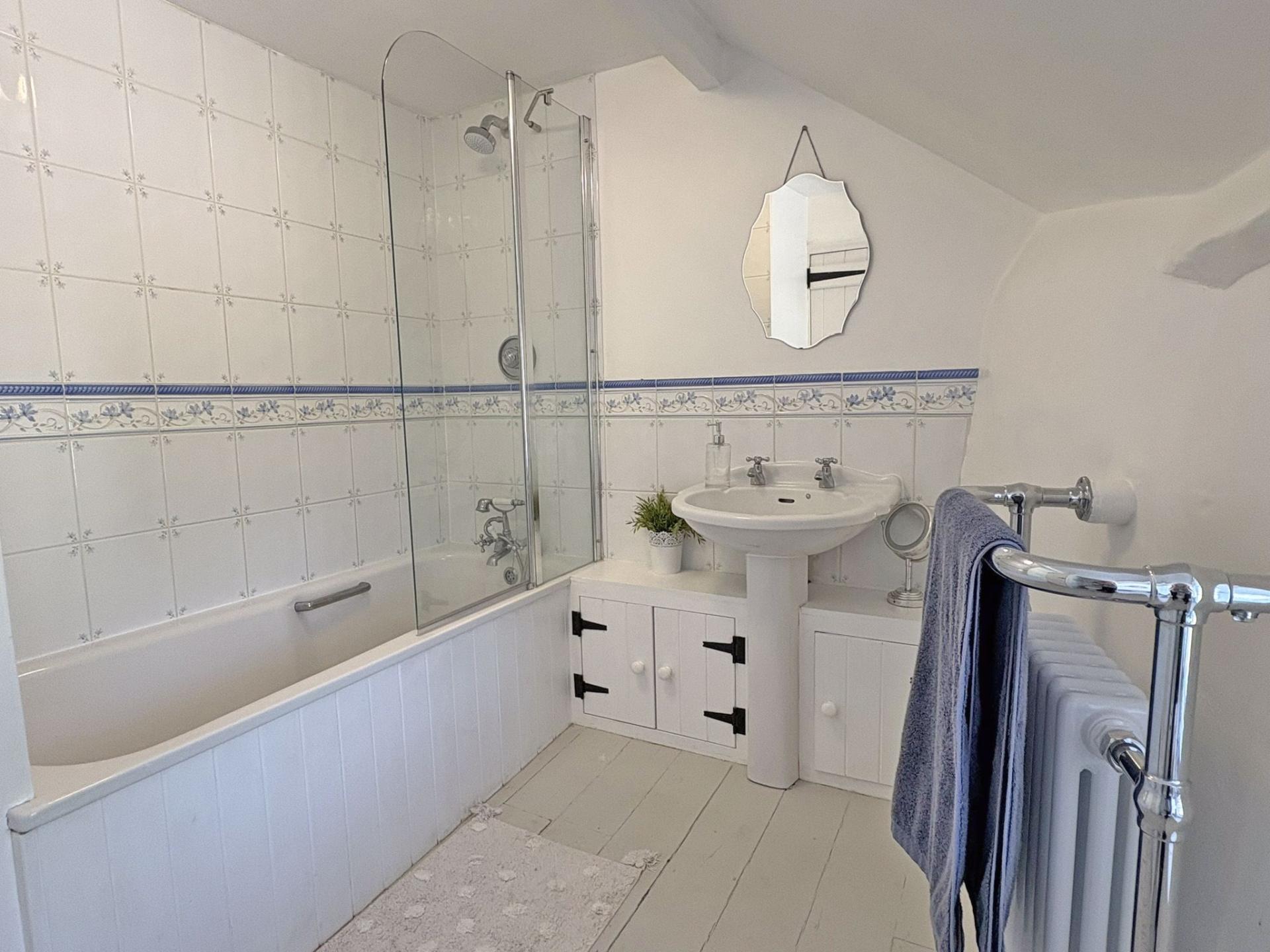 To the first floor the landing gives access to two double bedrooms, the main bedroom having built in wardrobes and there is a separate bathroom with shower over the bath.