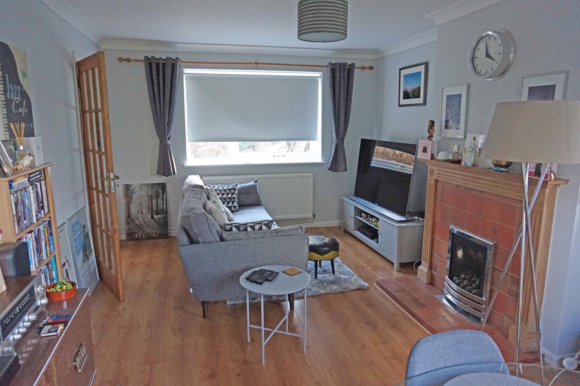 5.3m x 3.4m (17’3” x 11’) Enjoying a double aspect. Coved ceilings. uPVC window to the front and aluminium sliding patio door with an outlook to the rear garden. Further pair of uPVC doors provide access to a uPVC conservatory. Laminate flooring. Thermostatically controlled radiator. Fireplace with timber surround and tiled hearth and inset gas fire. Low level cupboard containing the fuse board. Television point. Telephone point. A pair of double doors leads through to the: