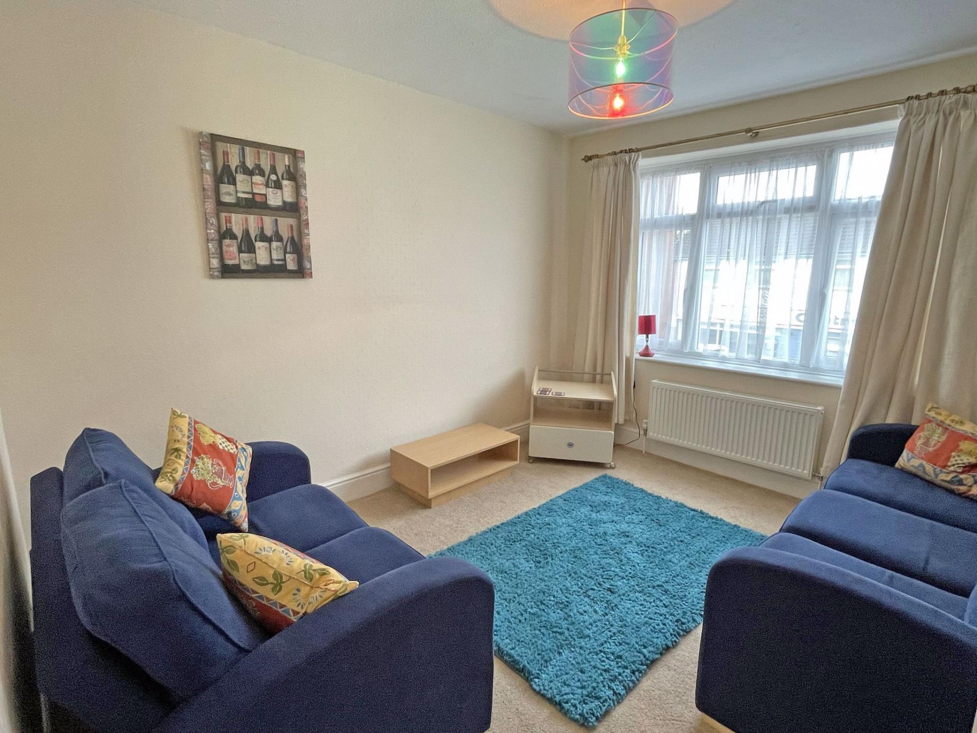 3.65m x 3.18m (12’ x 10’05’) uPVC double-glazed window to the front aspect. Curtains. Radiator. Carpet. Television point. Three seater and two seater sofa. TV stand. Dresser and sideboard.