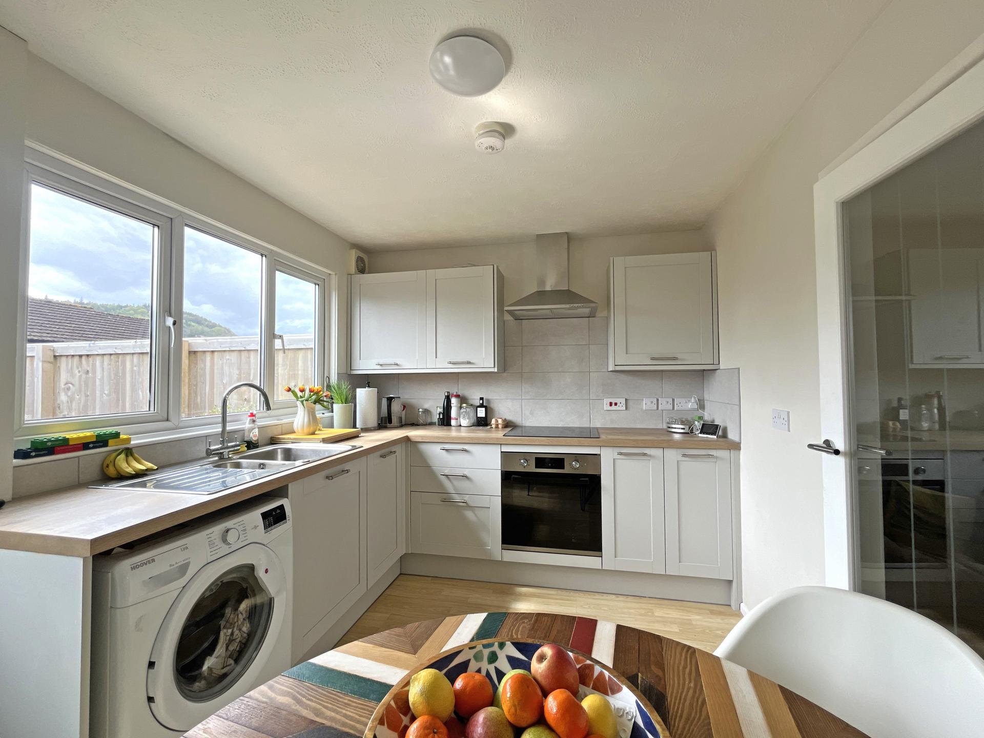 The property presents in excellent order throughout, with uPVC double glazing, gas central heating and neutral decoration. On entering the property, the sitting room has a front facing window, hard flooring and a connecting door to a separate kitchen/breakfast room fitted with a modern, Howdens kitchen to include a built-in oven and electric hob, space for a washing machine, further appliance space and a door to the rear garden.