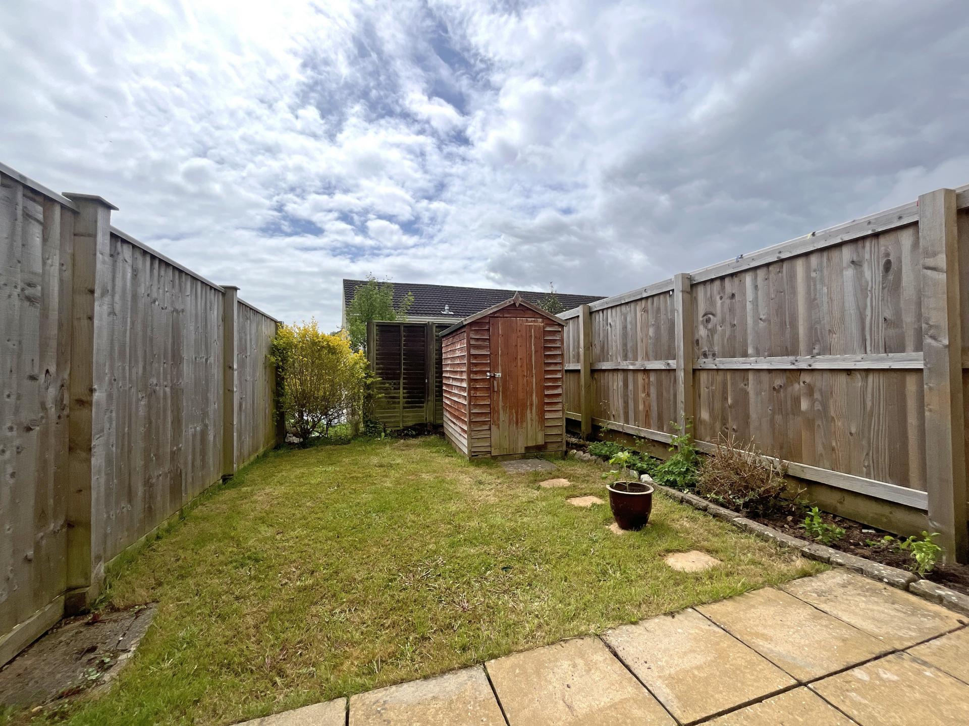 To the front of the house is gravelled, off-road parking for one car, whilst to the rear a level, lawn garden enjoys a south-west facing aspect with patio adjoining the back of the house, flowerbeds and a timber storage shed. The side gate is for emergency use only, or for the access of trades with prior approval from the neighbour.