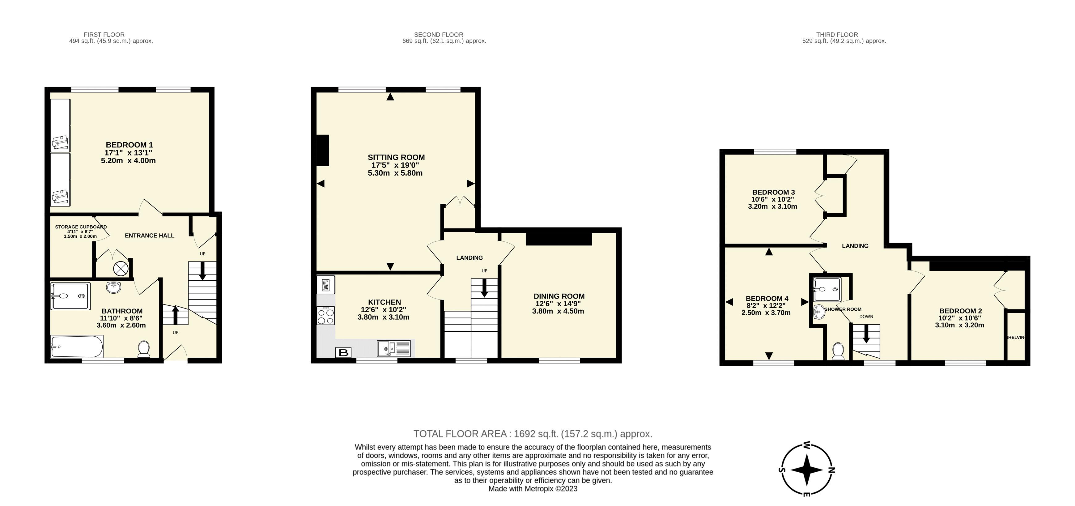 On the third floor there are three further bedrooms, one to the front and two enjoying the rear aspect, over the town to the sea and Salcombe Hill. Lastly, there is a shower room with WC.