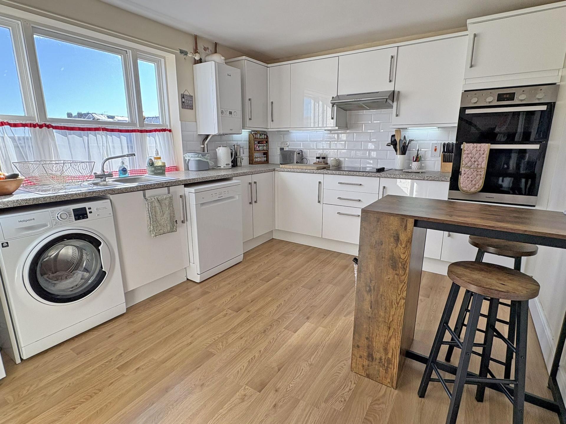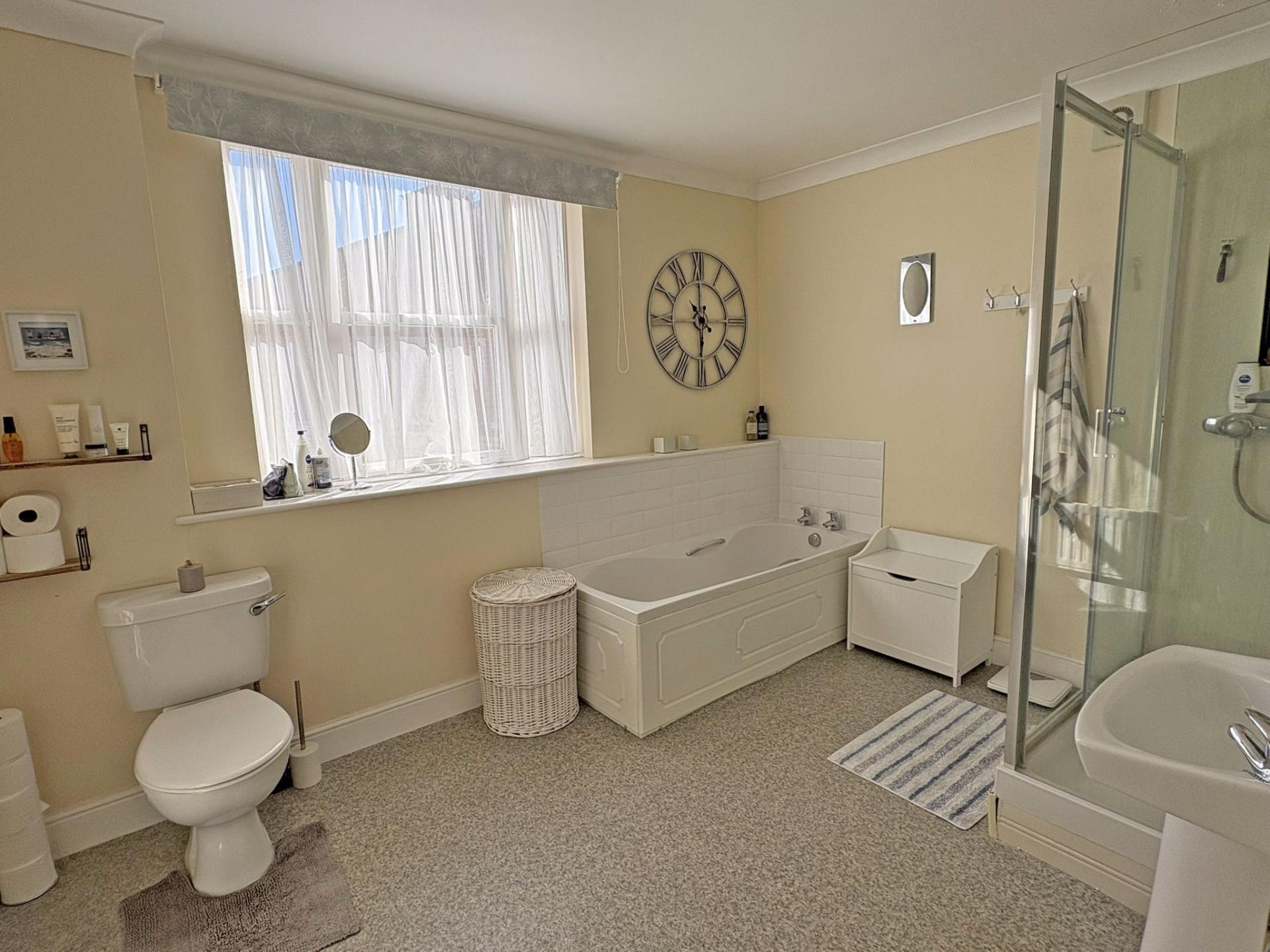 An external staircase rises from the parking area to first floor level and a front door opens into the entrance hall. The hall has various cupboards, to include walk-in storage. The largest of the four bedrooms is on this level, has a westerly aspect and is opposite a spacious bathroom, having a white suite to include a mains shower cubicle. On the second floor the kitchen/breakfast room has a rear facing window with an easterly aspect and views to both the sea and Salcombe Hill. There is a range of fitted units with a built-in electric oven, grill and hob and space for further appliances. A wall mounted gas boiler serves hot water and central heating. The large sitting room has two front facing windows whilst the separate dining room is rear facing with sea views. This room could easily be an additional bedroom if required.