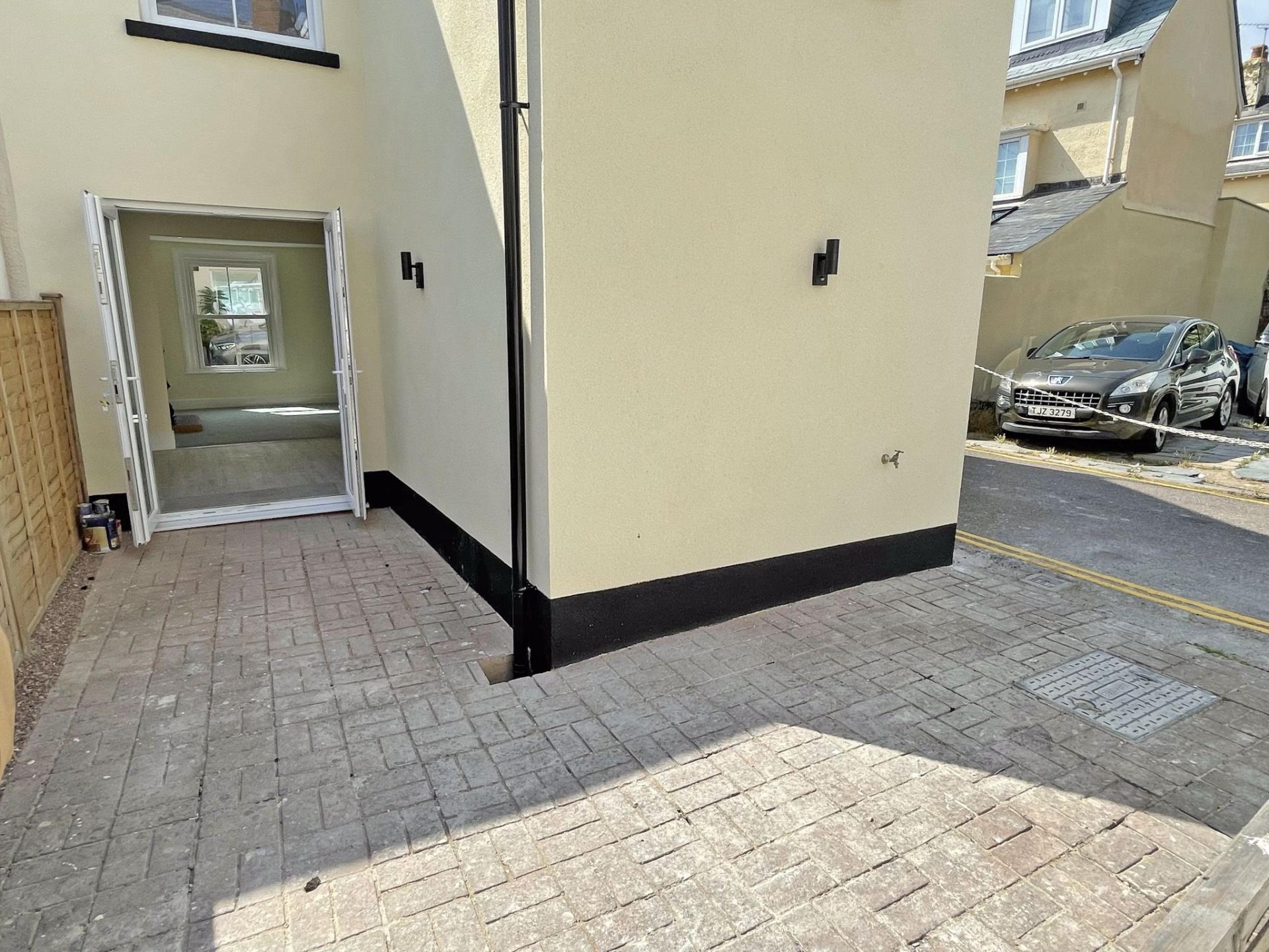 The front of the property borders York Street and the side of the property borders Riverside. At the rear is an L shaped area of block paving which provide an area for parking a small vehicle and a small seating area, together with outside lights and water tap.