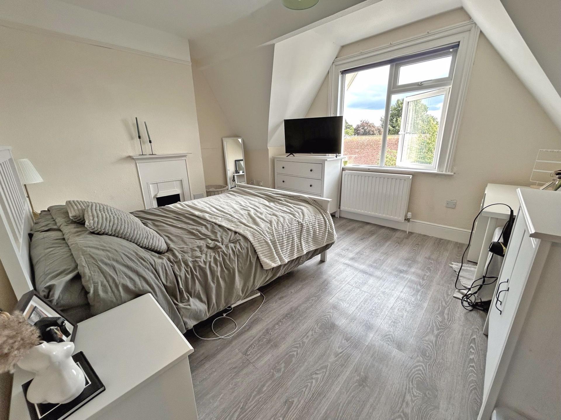 3.92m (12’10) (max) x 3.80m (12’05) (max) Sloping ceilings. uPVC ‘tilt & turn’ glazed windows to the front aspect. The sitting area is carpeted and has a television point, thermostatically controlled radiator, phone point and Ideal wall hung gas fired combi boiler for central heating and hot water. In the kitchen area there is a brand new kitchen comprising a range of floor standing and wall mounted cupboards with cream door and drawer fronts, stainless steel handles and slate coloured worksurfaces. White high gloss splashbacks. Stainless steel sink with single drainer. Space below for a freestanding washing machine. Space for a freestanding electric cooker with a stainless steel chimney extractor over. Space for a freestanding under counter fridge/freezer. Ceiling spotlights. Lino floor covering.