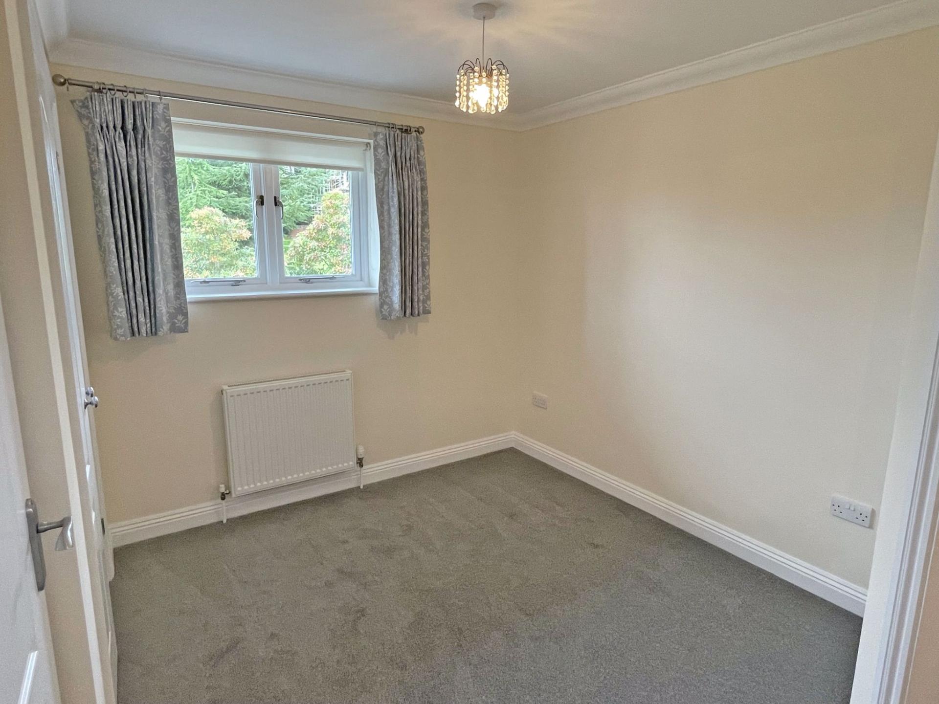 2.78m (9’ 01) x 2.66m (8’ 09). Window to front aspect with pleasant outlook. Roller blind. Curtain pole. Radiator. TV point. Telephone point. Built-in double wardrobe. Carpet. Door to: