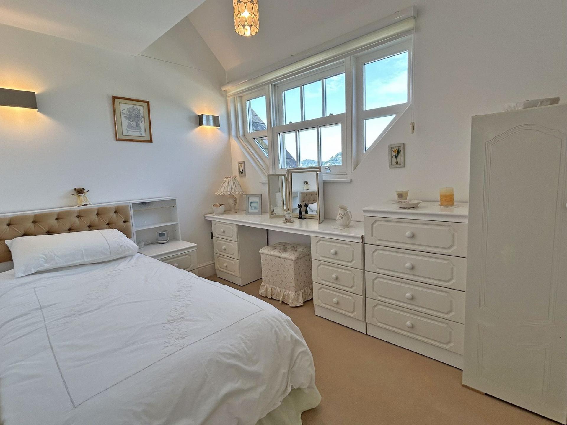 5.44m (17’10) x 3.27m (10’09) part vaulted ceiling. Double glazed sash windows with pleasant views in a westerly direction. Wood flooring. Heating room stat. Television point. Curtains and blinds.