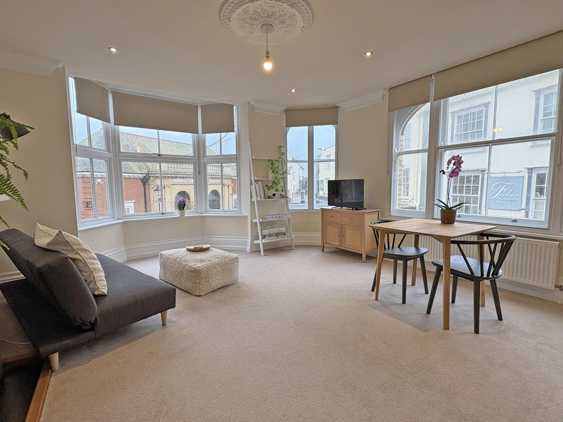A beautifully converted two bedroom first floor flat, refurbished approximately four years ago and decorated internally to a neutral colour scheme. Part double glazing and part secondary glazing, with gas fired central heating, a modern kitchen and shower room. Open plan kitchen/dining/sitting room with dual aspect and an outlook over the Market Square.