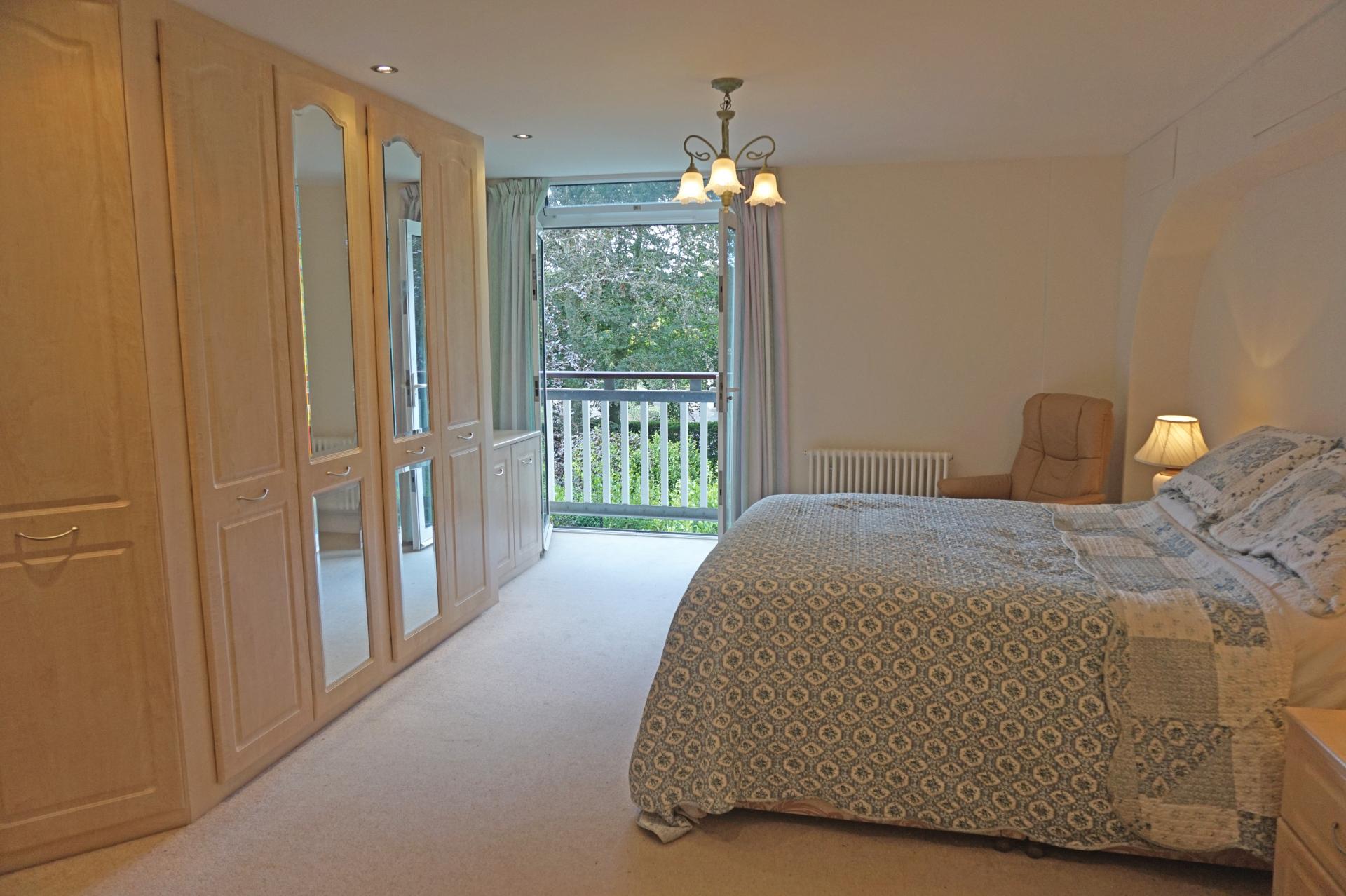 4.96m x 4.0m (16’3 x 13’2) Double glazed French doors with a Juliette balcony enjoying a pleasant outlook in a westerly direction. Low voltage downlights. Carpet flooring. Fitted bedroom furniture including mirror fronted wardrobes with internal hanging space and shelving. Bedside drawers. Carpet flooring. Television point. Telephone point. Curtains. Door to a boiler cupboard containing a wall hung Ideal gas fired boiler, freestanding timber shelving, a light and carpet flooring. Oak door to: