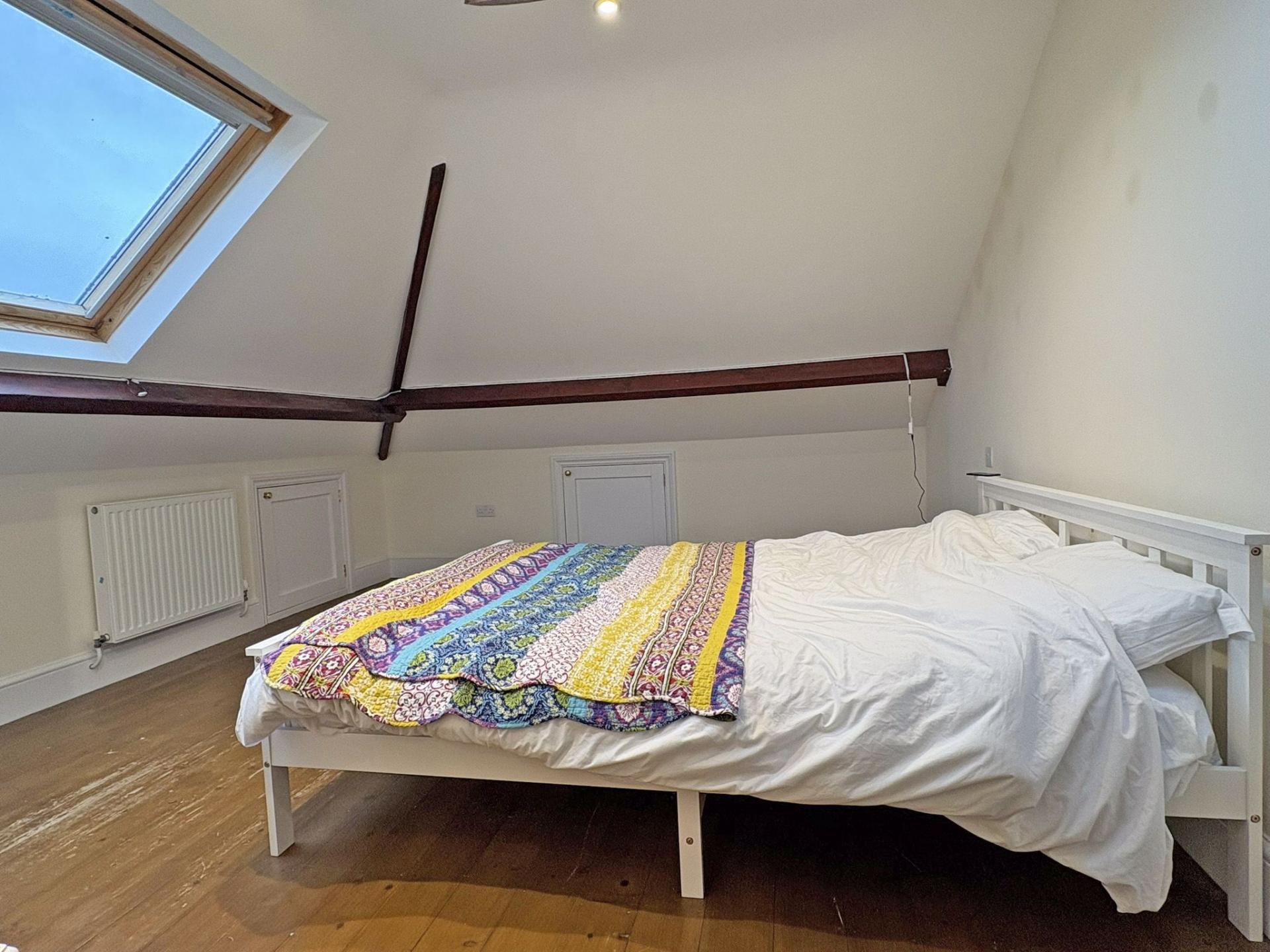 3.75m (12’03) x 3.66m (12’) with sloping ceiling, reduced head height. Three Velux windows. LED ceiling downlights. Radiator. Two access doors the roof eaves. Wood flooring.