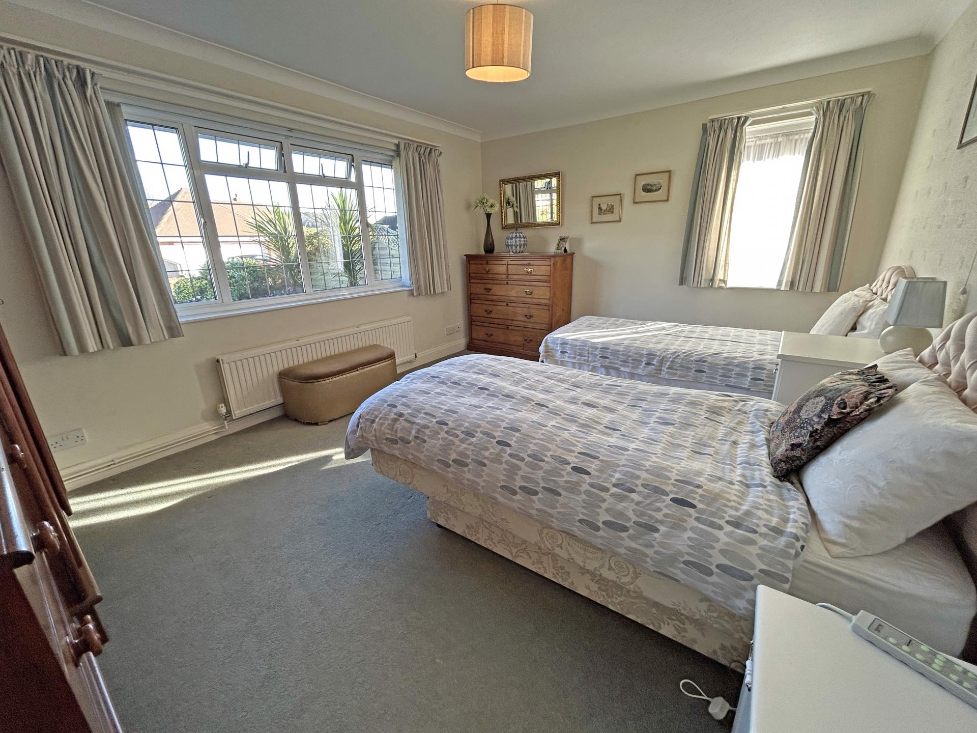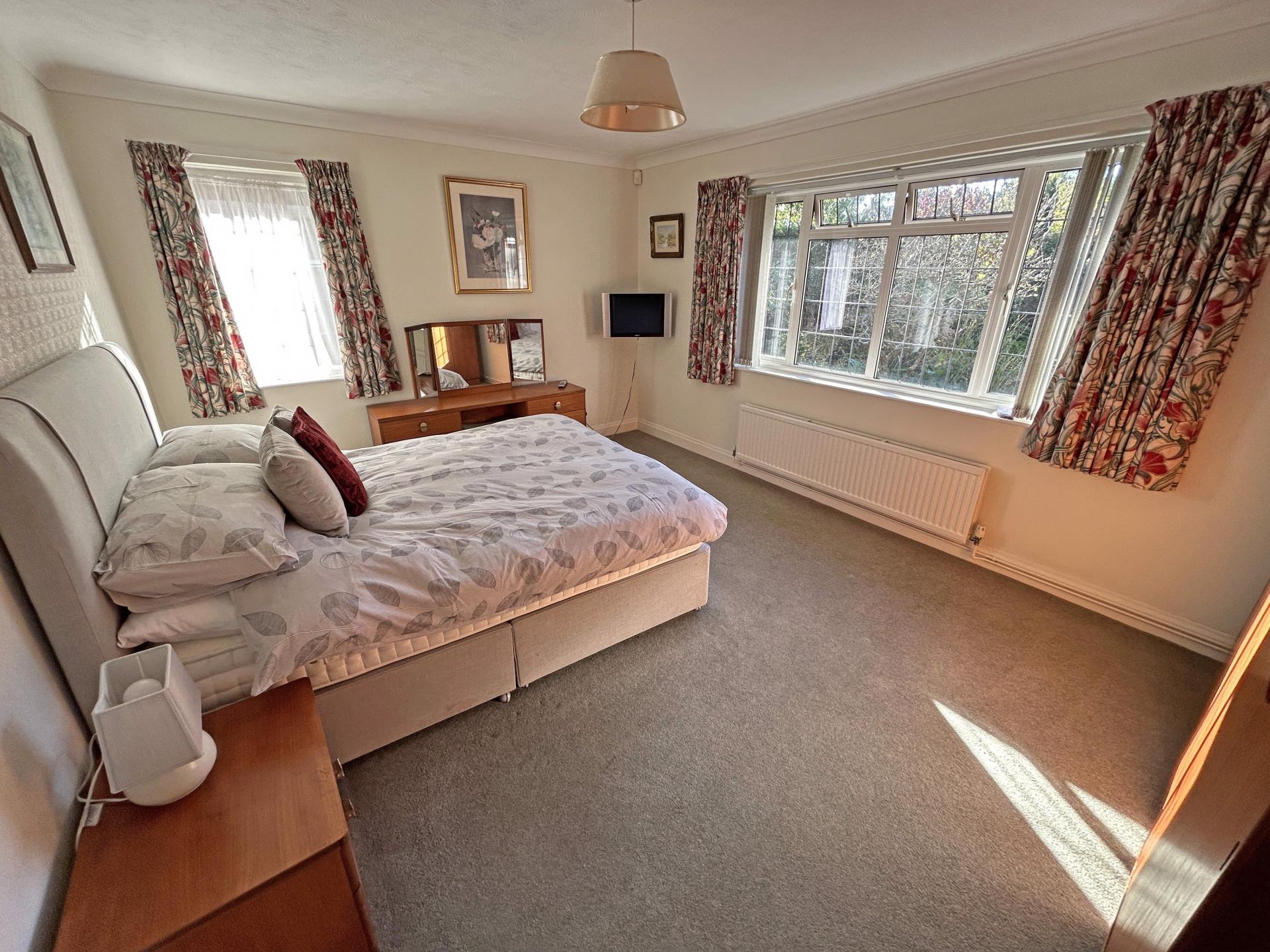4.86m (15’11) x 3.64m (11’11) Double glazed window to the rear and side aspect, with a pleasant outlook to the rear garden. Blinds and curtains. Radiator. Carpet. TV point.