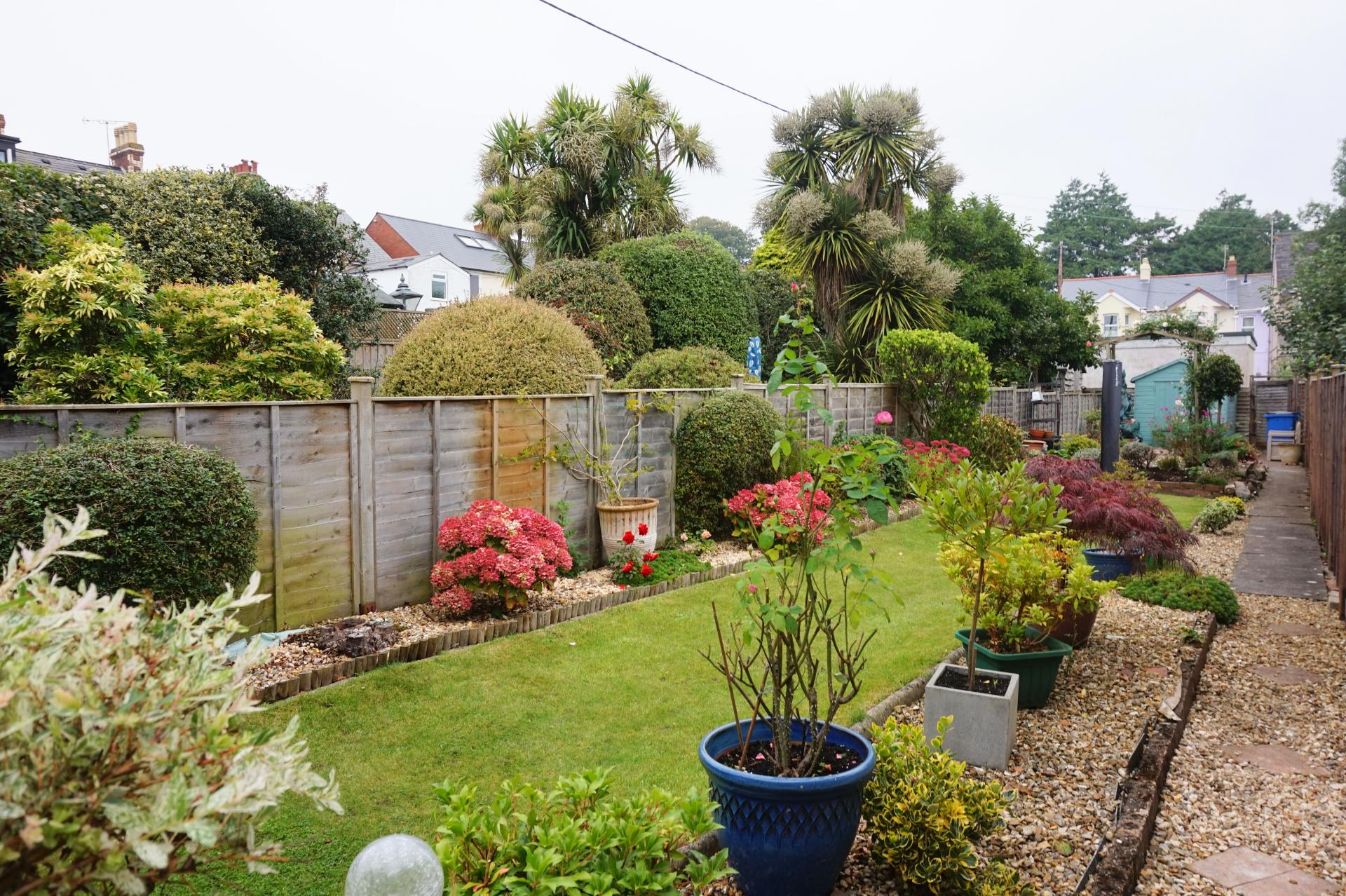 At the front of the property is a tarmac footpath, giving pedestrian access to the front door and an off-road gravel parking area providing space for one large vehicle. To the rear of the property is a a well presented and attractively landscaped, level and fully enclosed garden. Beyond the kitchen extension is a gravelled footpath extending to the rear of the garden, with attractive low-maintenance shrub borders and central rectangular lawn. At the rear of the garden is a low maintenance brick paviour patio, garden shed and rear pedestrian gate providing access to the service footpath at the rear.