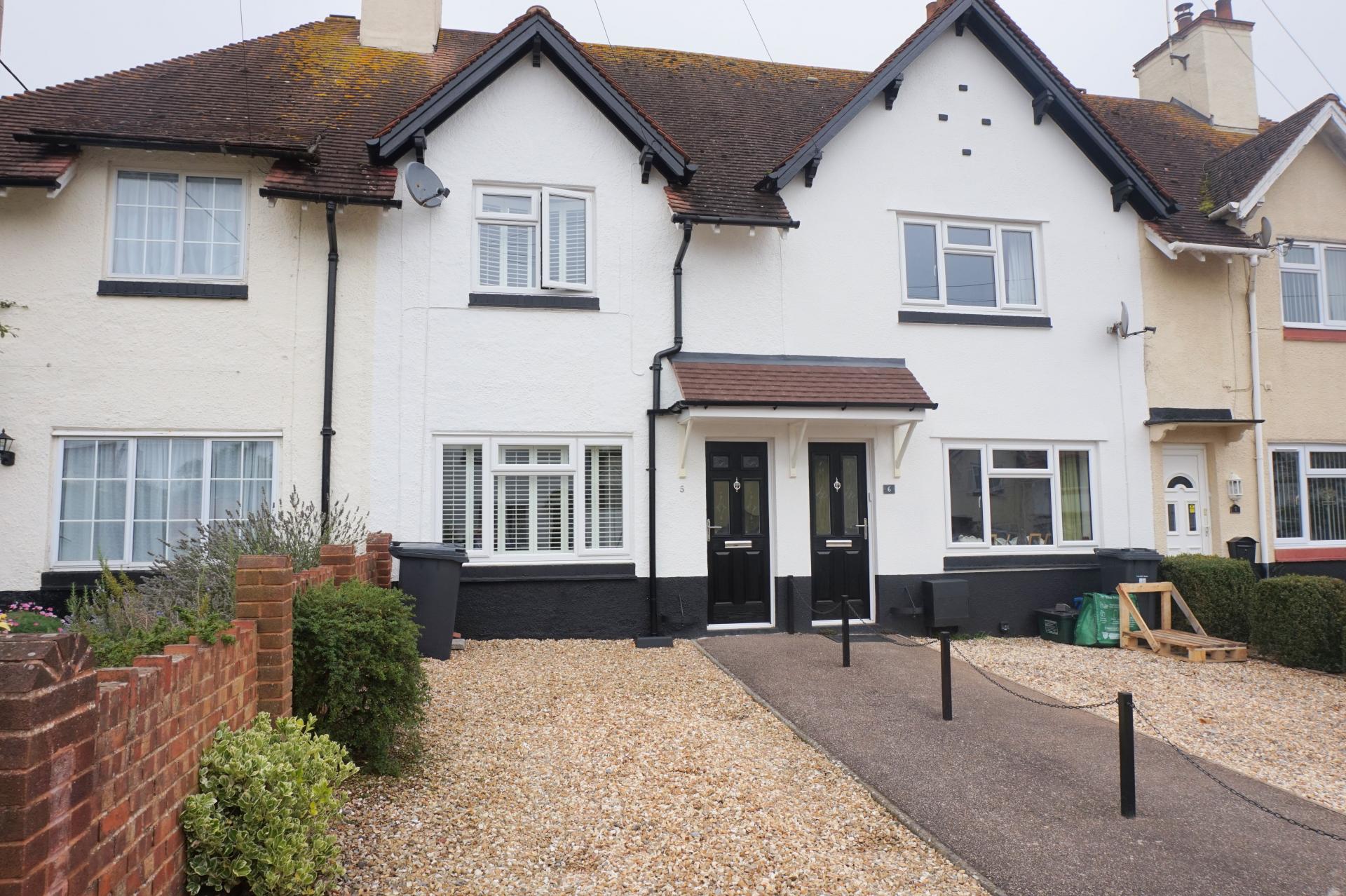 Within the house there is an open-plan kitchen/diner which overlooks the rear garden, and good size sitting room featuring wooden shutters, and enjoys a southerly aspect. To the first floor there are two bedrooms, and a bathroom with a white suite.