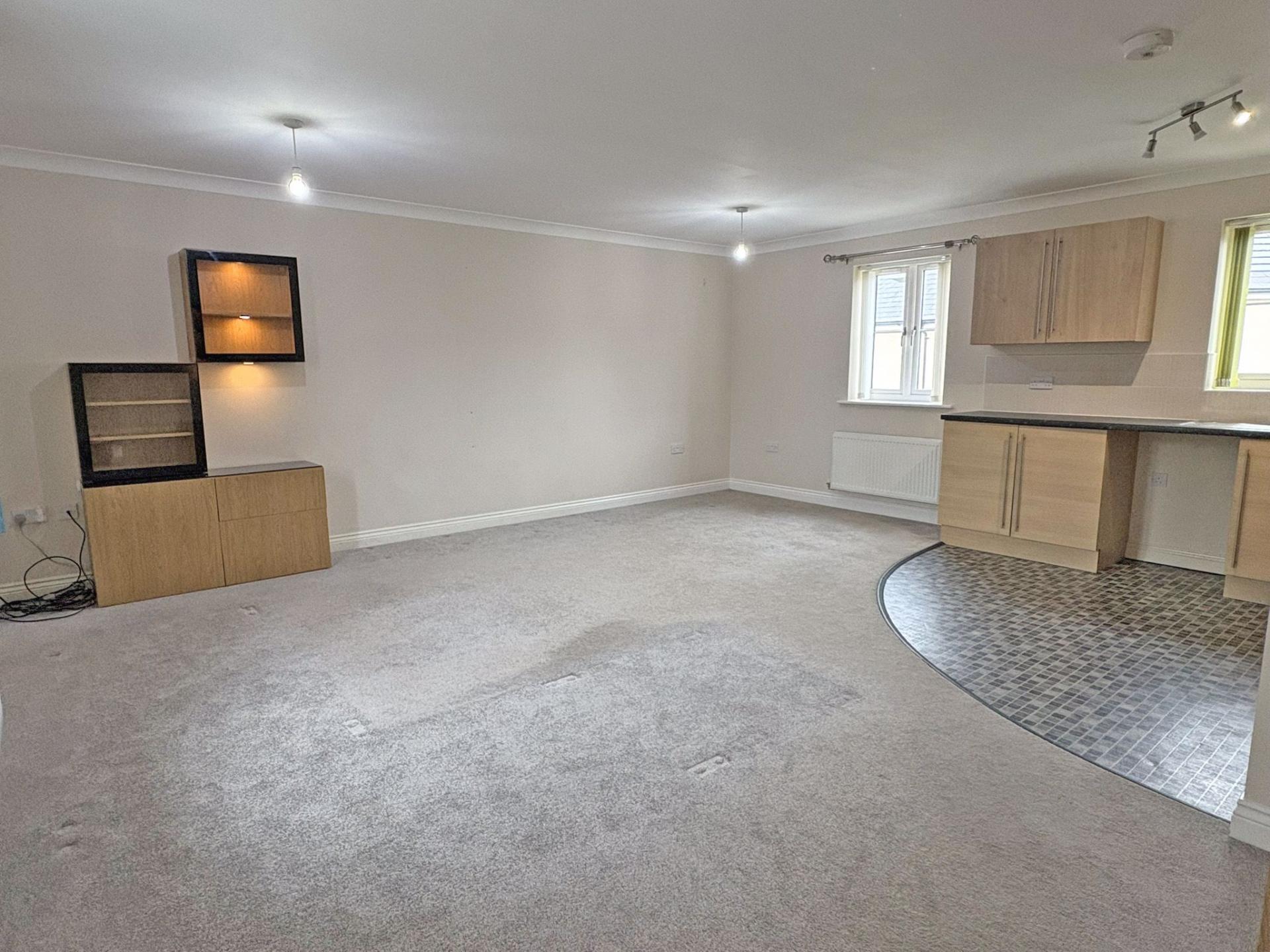 5.77m (18’11) x 5.40m (17’08). Three uPVC double glazed windows to front and rear aspects with fitted blinds. Carpet flooring to the sitting/dining area and lino flooring to the kitchen. A modern L shaped KITCHEN featuring a range of base units and wall cupboards, finished in an oak wood effect with stainless steel handles, co-ordinating worksurfaces and cream tiled splashbacks. Stainless steel sink incorporating drainer. Stainless steel gas hob and cooker hood over. Built-in single stainless steel electric oven. Space for freestanding fridge/freezer, washing machine and dishwasher. Ceiling extractor vent. SITTING/DINING AREA Carpet flooring. Two radiators. Television point. Modern range of fitted display cupboards, three being glass fronted.