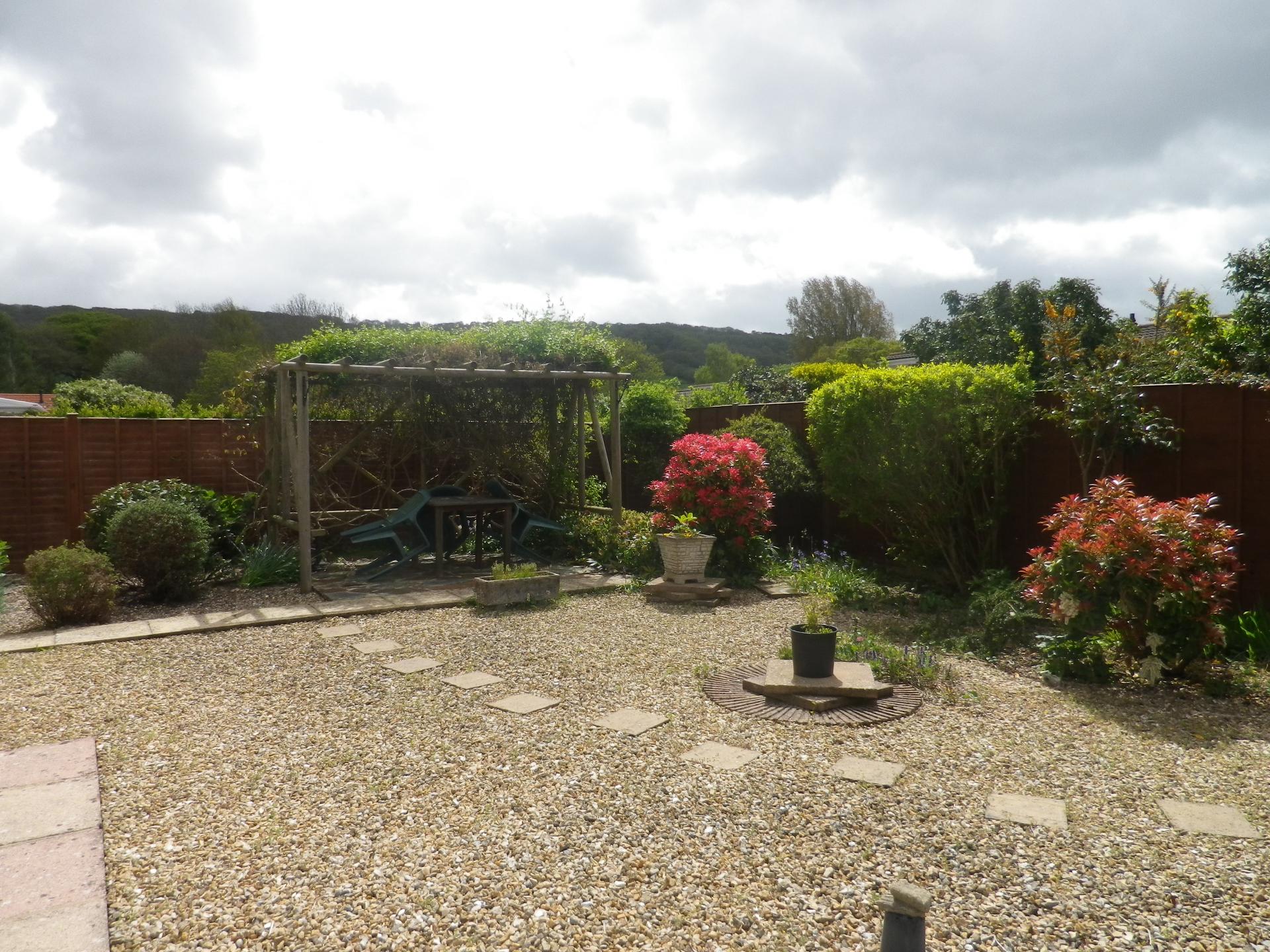 There is access to the rear of the garden via the right hand side of the property and via a pedestrian gate, gravelled footpath alongside a timber garden shed. The rear garden is fully enclosed and enjoys a southerly aspect. There are areas of patio, crazy paving, a pergola, mature shrubs and views towards Salcombe Hill.