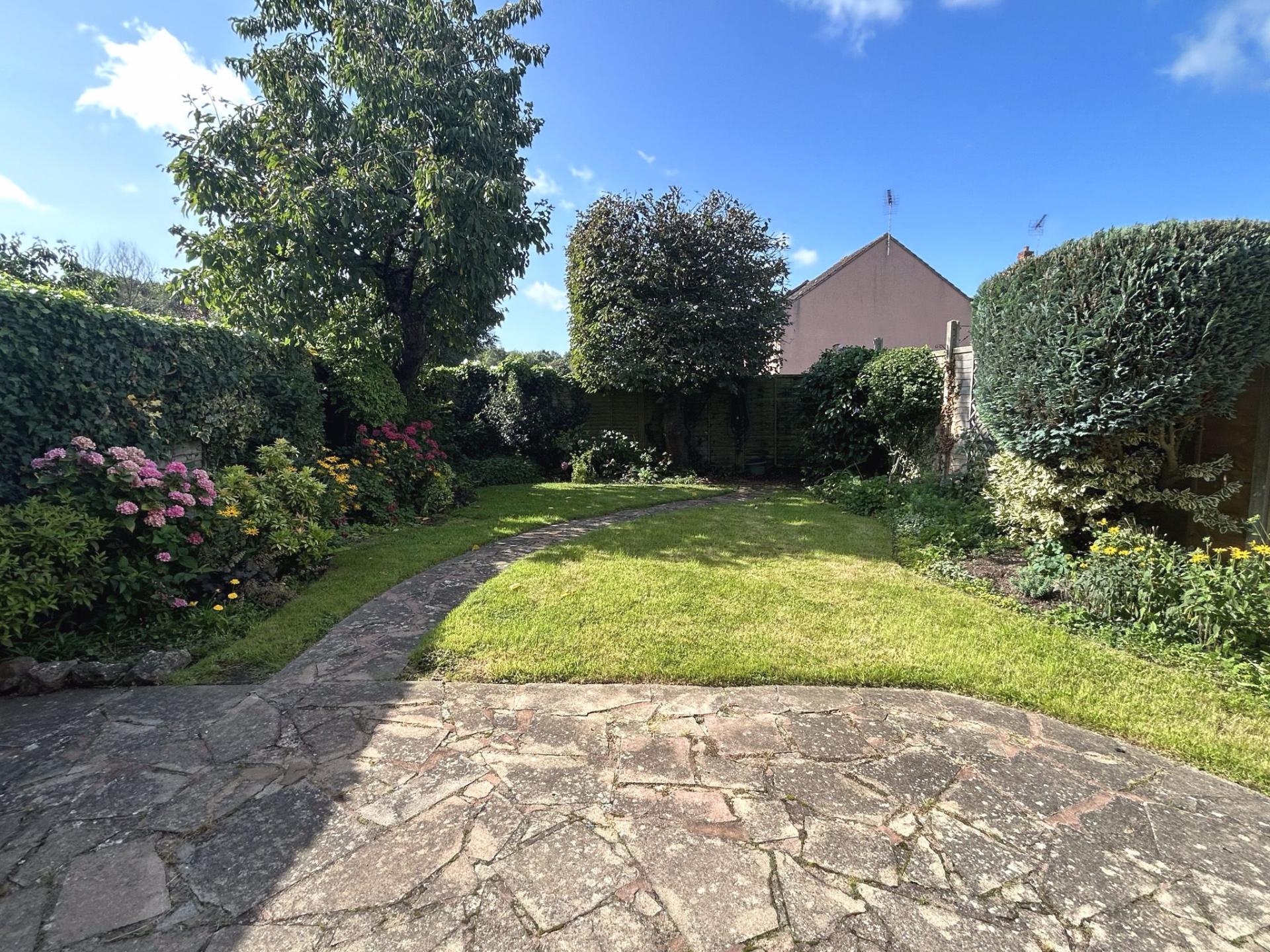 At the front of the property a driveway provides off-road parking for one car. An adjoining lawn has ornamental shrubs and a tree. To the rear is a fully enclosed, south facing garden with central lawn, crazy paving patio and mature shrub borders and beds. Outside tap.