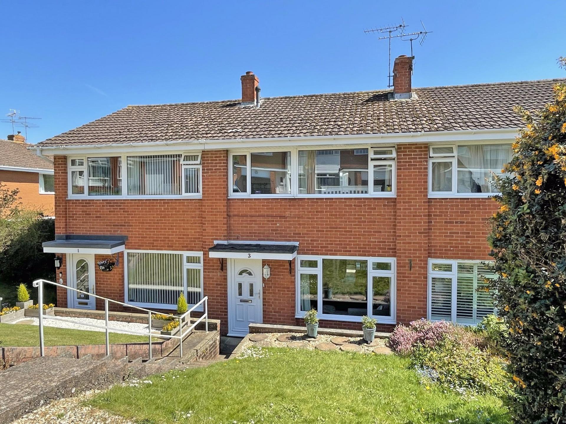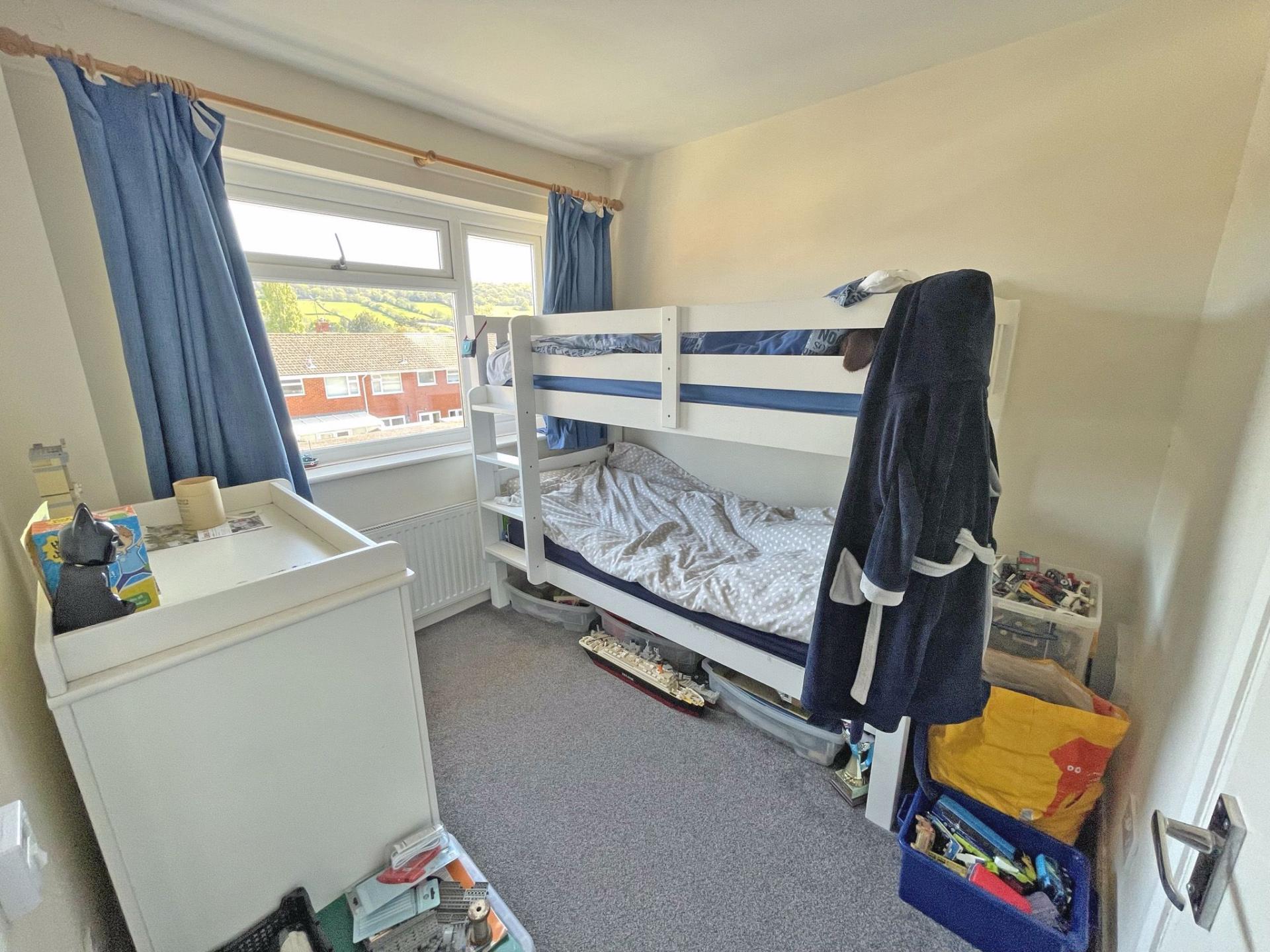 Mid-terrace House. Entrance hall, open plan sitting / dining room, modern kitchen (built in single oven and hob. space for fridge / freezer and washing machine), three bedrooms, bathroom (shower over bath), enclosed rear garden / patio, single garage (in block at rear). UPVC DG Windows, Gas CH, neutral decor throughout. close proximity of local amenities and bus routes and within short walking distance of 'The Byes'.