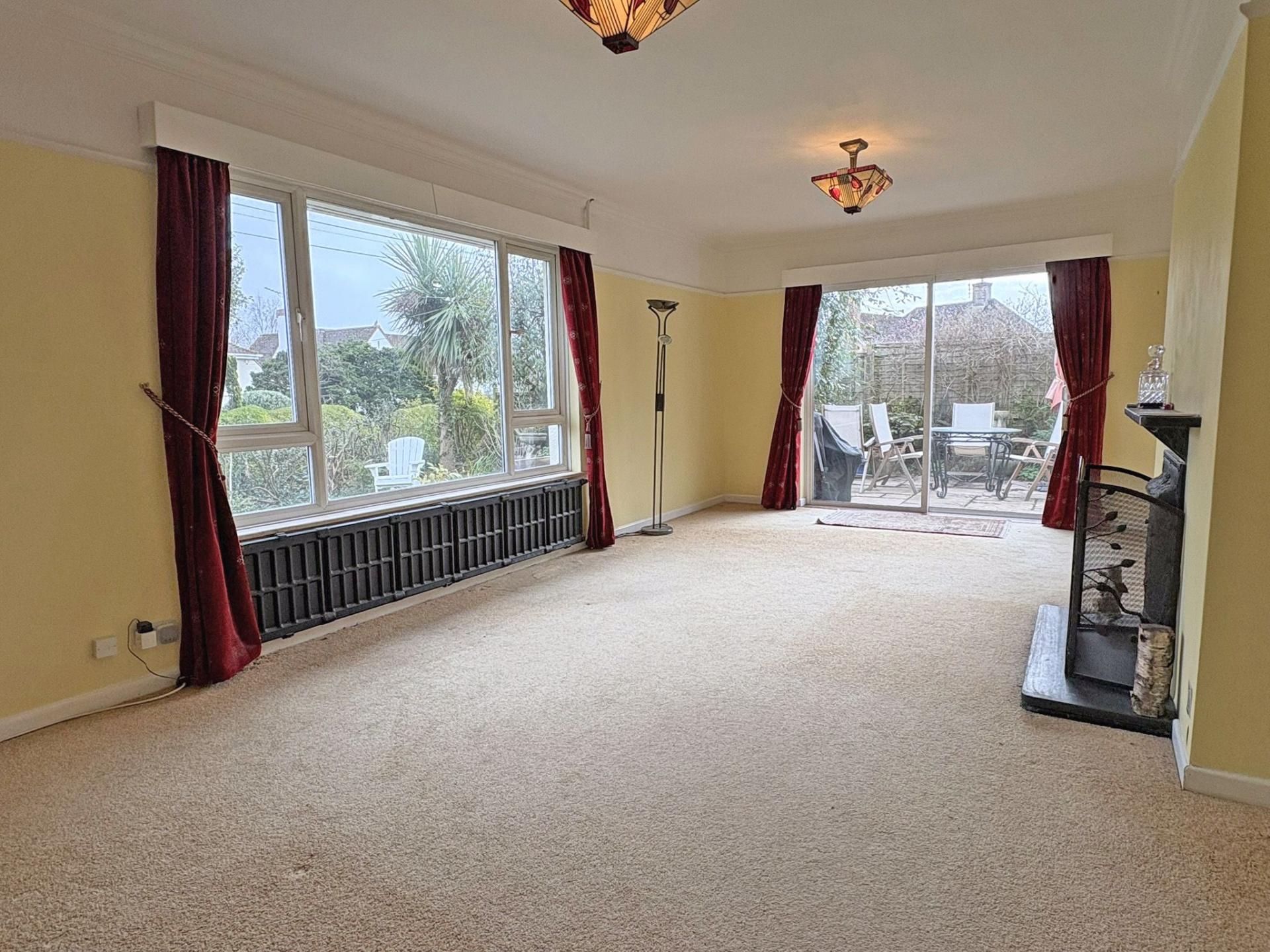 7.0m (22’11) x 3.80m (12’05) Dual aspect with double glazed windows, enjoying an easterly aspect over the garden and towards Salcombe Hill. Aluminium double glazed sliding patio door leading to the south facing patio. Carpet. Curtains. TV point.