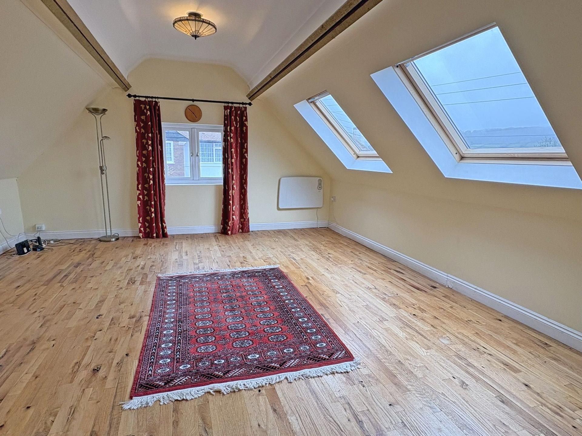 4.17m (13’08) x 3.50m (11’06). Velux window. Electric wall heater. Carpet.