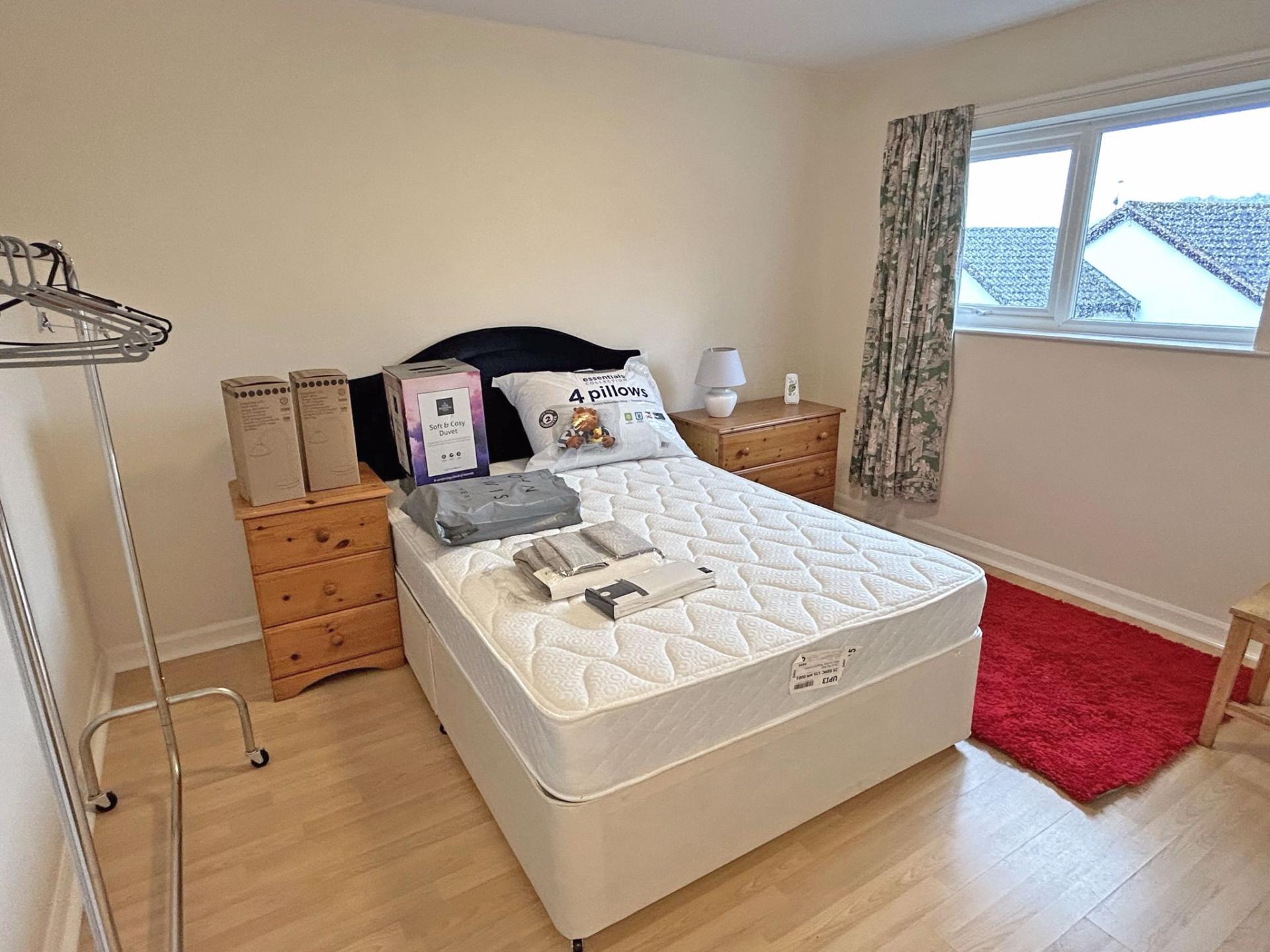 BEDROOM ONE 3.58m (11’09) x 2.90m (9’6) uPVC double glazed window to the front aspect with fine views towards Bulverton Hill. Curtains. Radiator. Wood floor. Telephone point. LED light.