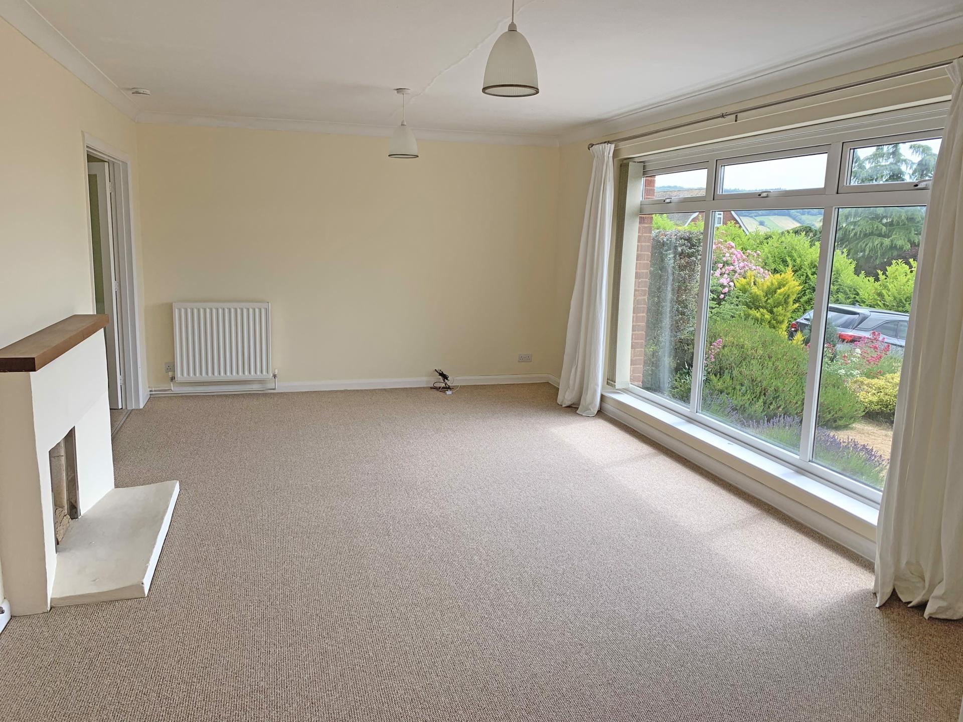 6.49m (21’03) x 3.79m (12’05) Coved ceiling. Large uPVC double glazed picture window with views in a southerly direction and sea glimpses. Fitted blinds. Curtains. Carpet flooring. Two radiators. Stone fireplace and hearth, with hardwood mantlepiece (for decorative purposes only). Central heating room stat. Television point. Glazed door to: