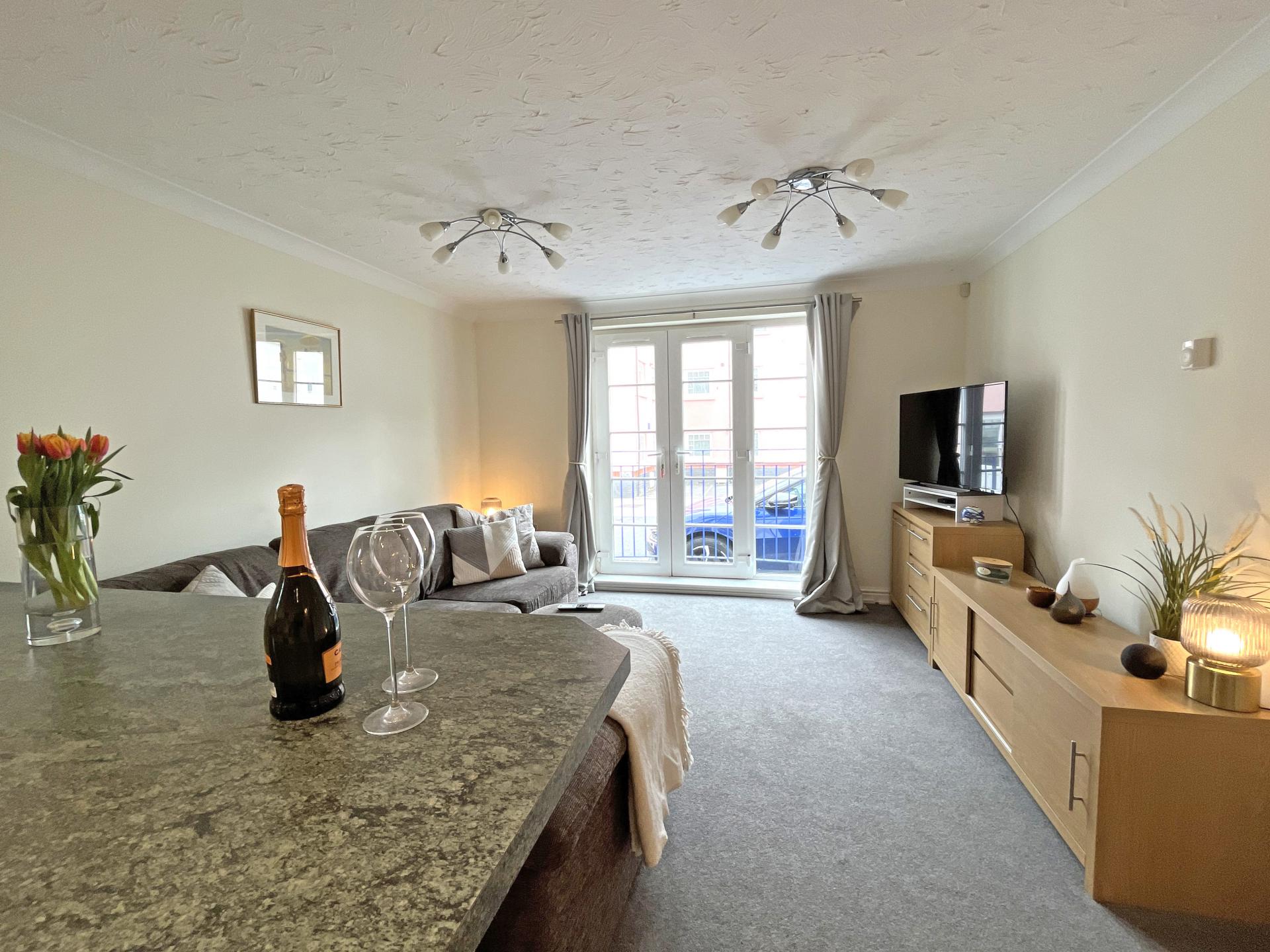 Presented in excellent order throughout and offered for sale with no ongoing chain, this purpose-built ground floor flat has gas central heating and double glazing. An entrance hallway leads to an open plan sitting room and kitchen, with dual aspect to include a Juliette balcony window looking south easterly. The kitchen is fitted with a good range of units and with built in appliances comprising fridge/freezer, washing machine, oven, grill and gas hob.
